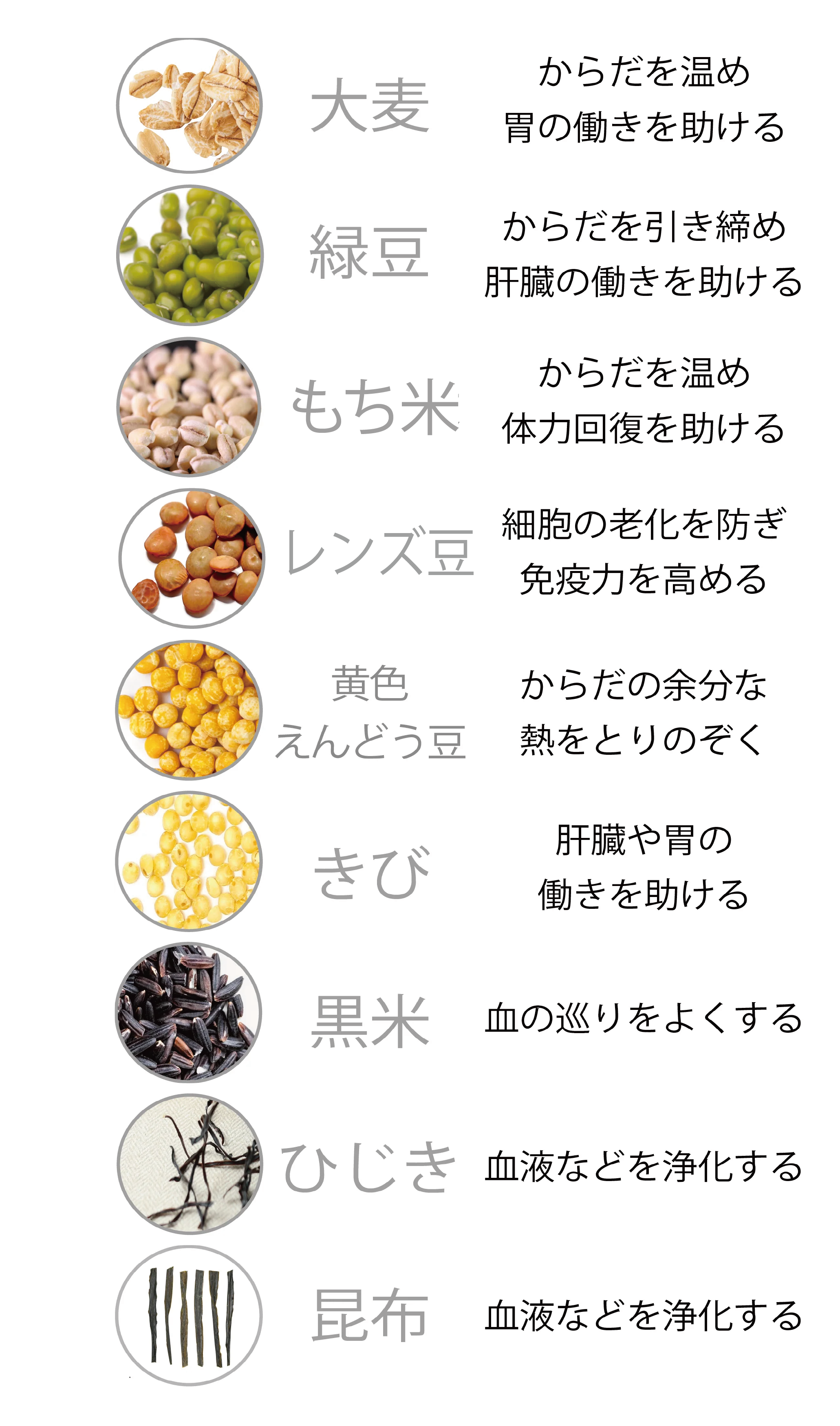 それぞれの雑穀が持つ力が、ひとの身体を支え、ととのえてくれるのです。