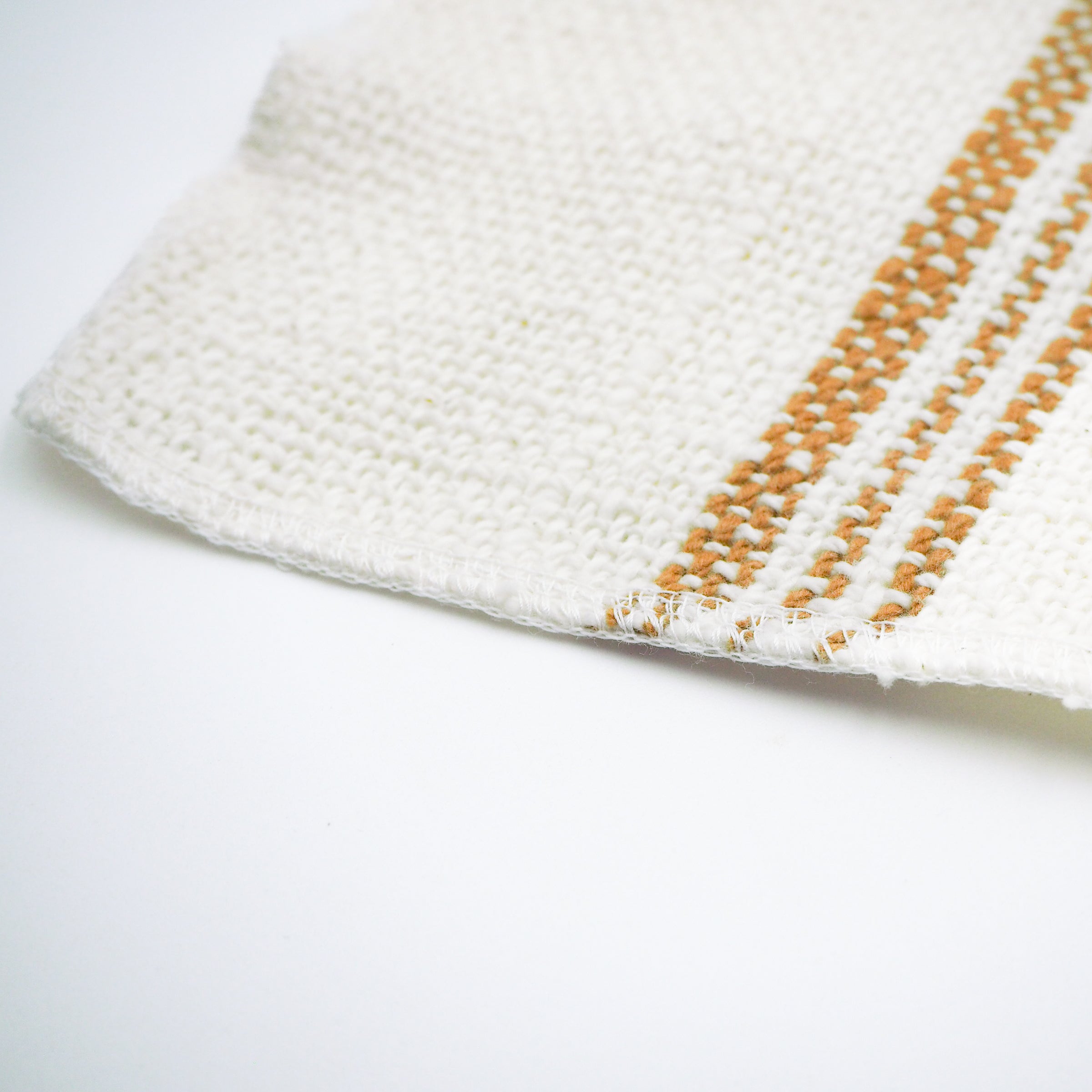太さが均一でない手紡ぎの糸を荒く織り上げているため、布の表面にふっくらした凹凸があり、触れたときのやさしい肌触りが生まれます。