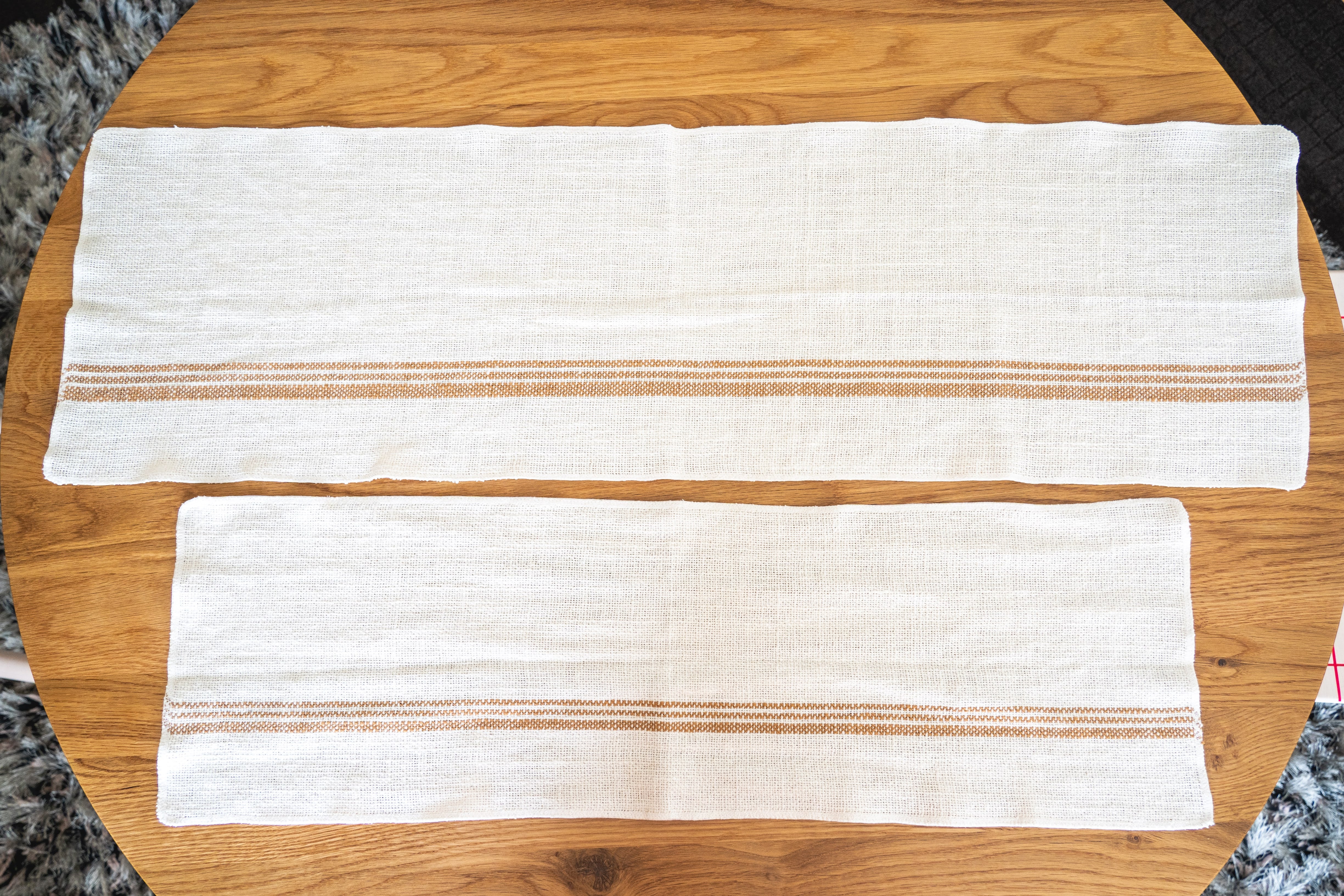 写真上が、30×100cmのクロスで、写真下が、本商品(25×80cm)のクロスです。