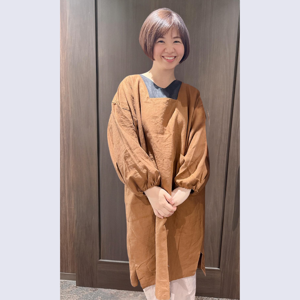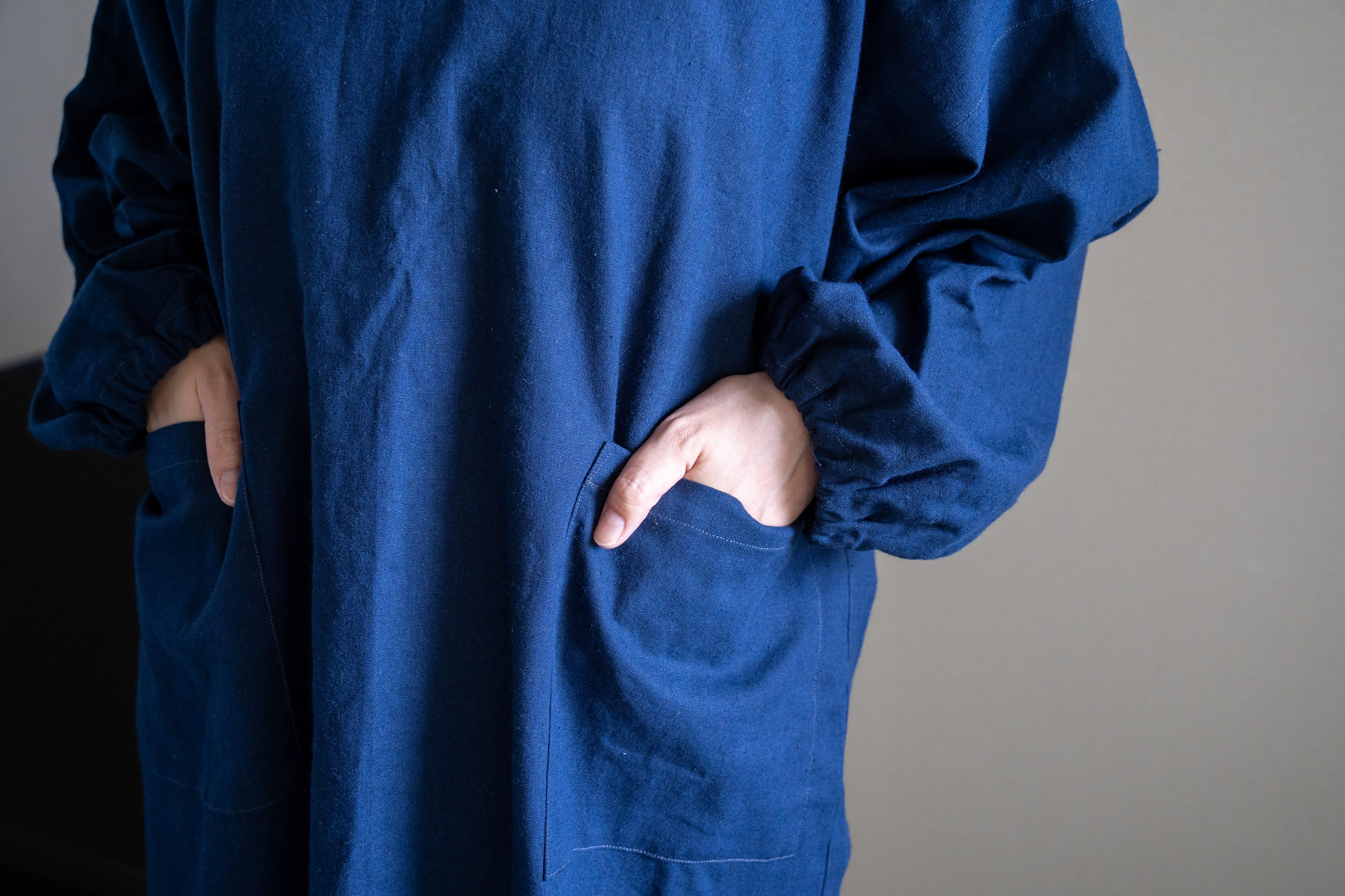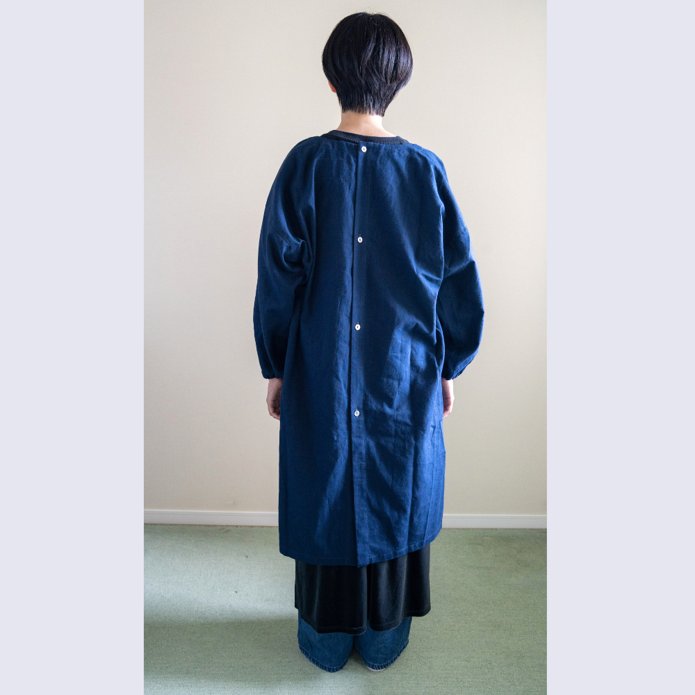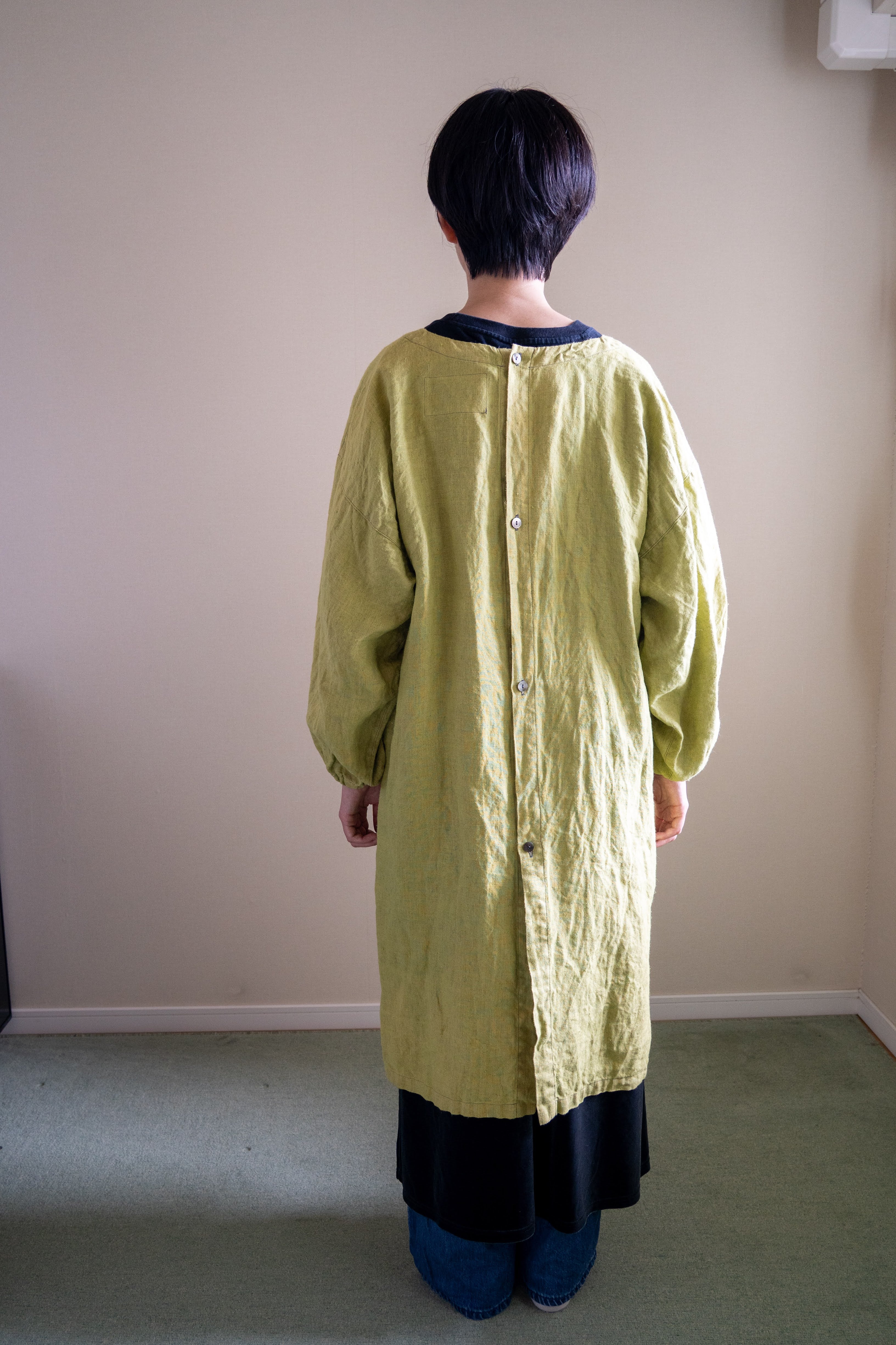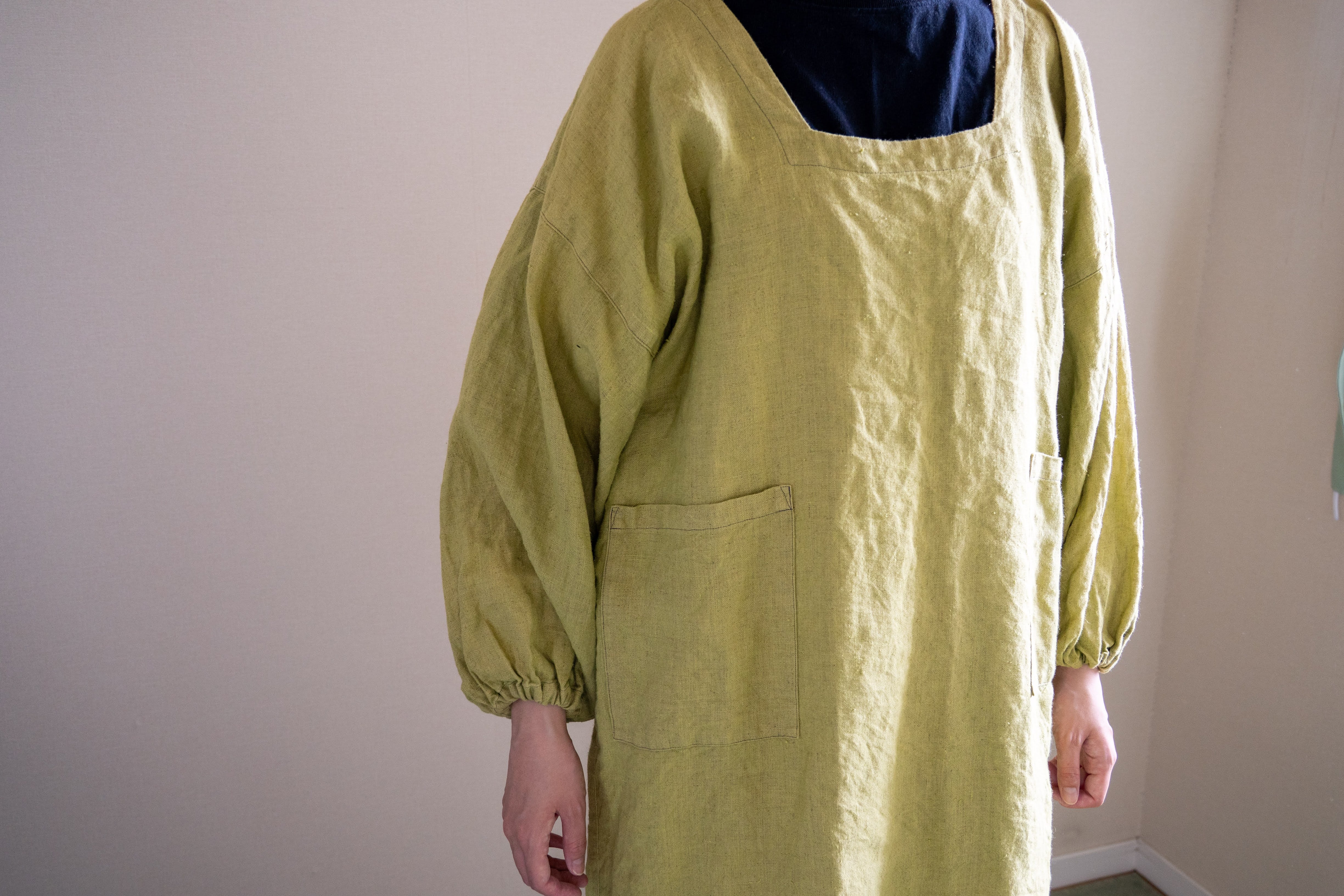 糸をたっぷり使って高密度に織りあげたリネンは、しっかりとした質感。身につけ使い込んでいくことでの経年変化も美しいのが特徴です。通気性が高く、乾きが速いので、こまめにお洗濯もできます。