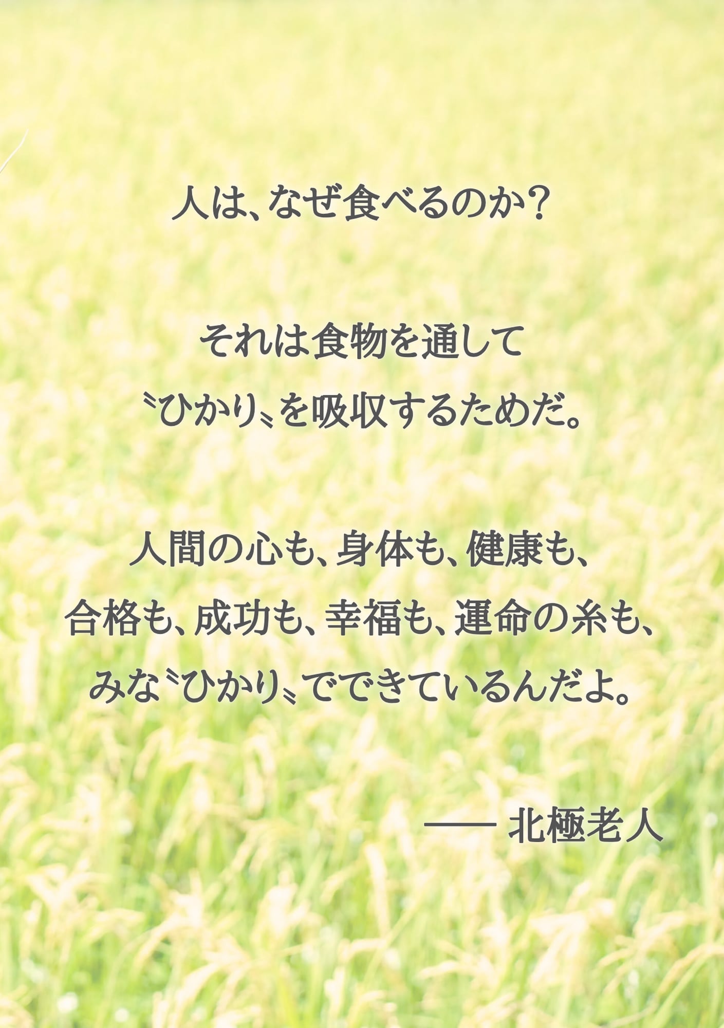 北極老人が作ってくれた〝いのちのごはん〟は食材から放出される光と、そこから引き出される〝いのち〟の記憶によって、食べる人を幸せな人生へと導くごはんでした。
