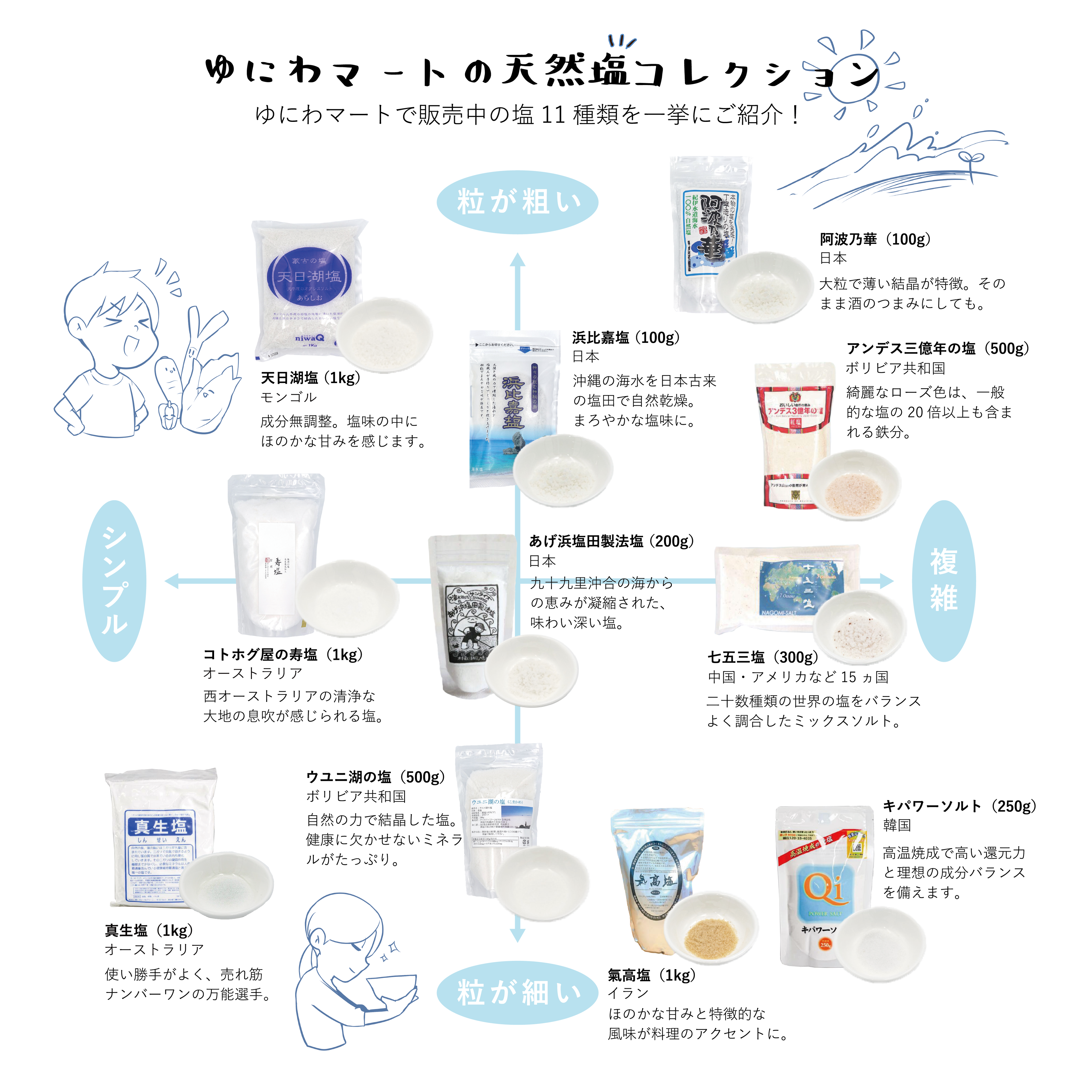 料理にも、もちろん使えますが、僕は鼻うがい用の塩として使ってます。サラサラとしてて水に溶けやすく、使いやすいです。容量も多いので、真生塩をベースにして、ここにキパワーソルトを混ぜたり、ウユニ湖の塩など、ゆにわマートで売ってる塩を色々と混ぜて使ってます。