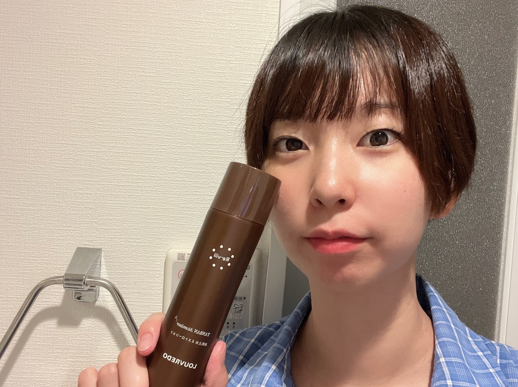 めちゃくちゃ細かいミストで、肌にぴったりくっついて浸透していくのが気持ちいいです?顔と一緒に髪や首にもシューっとしています。ベタつきやすい季節は、化粧水として活躍しています!
