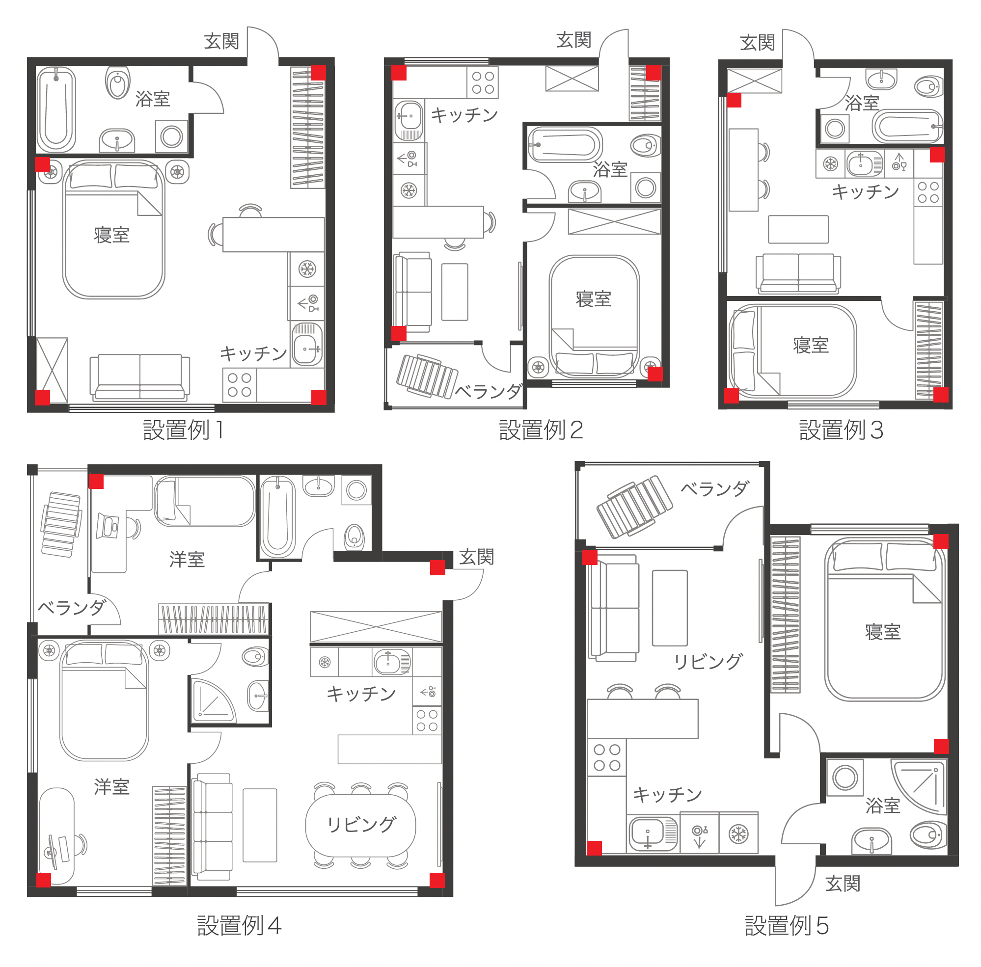 風呂場の手前に設置するか、4つ全てを別の階に設置してください。