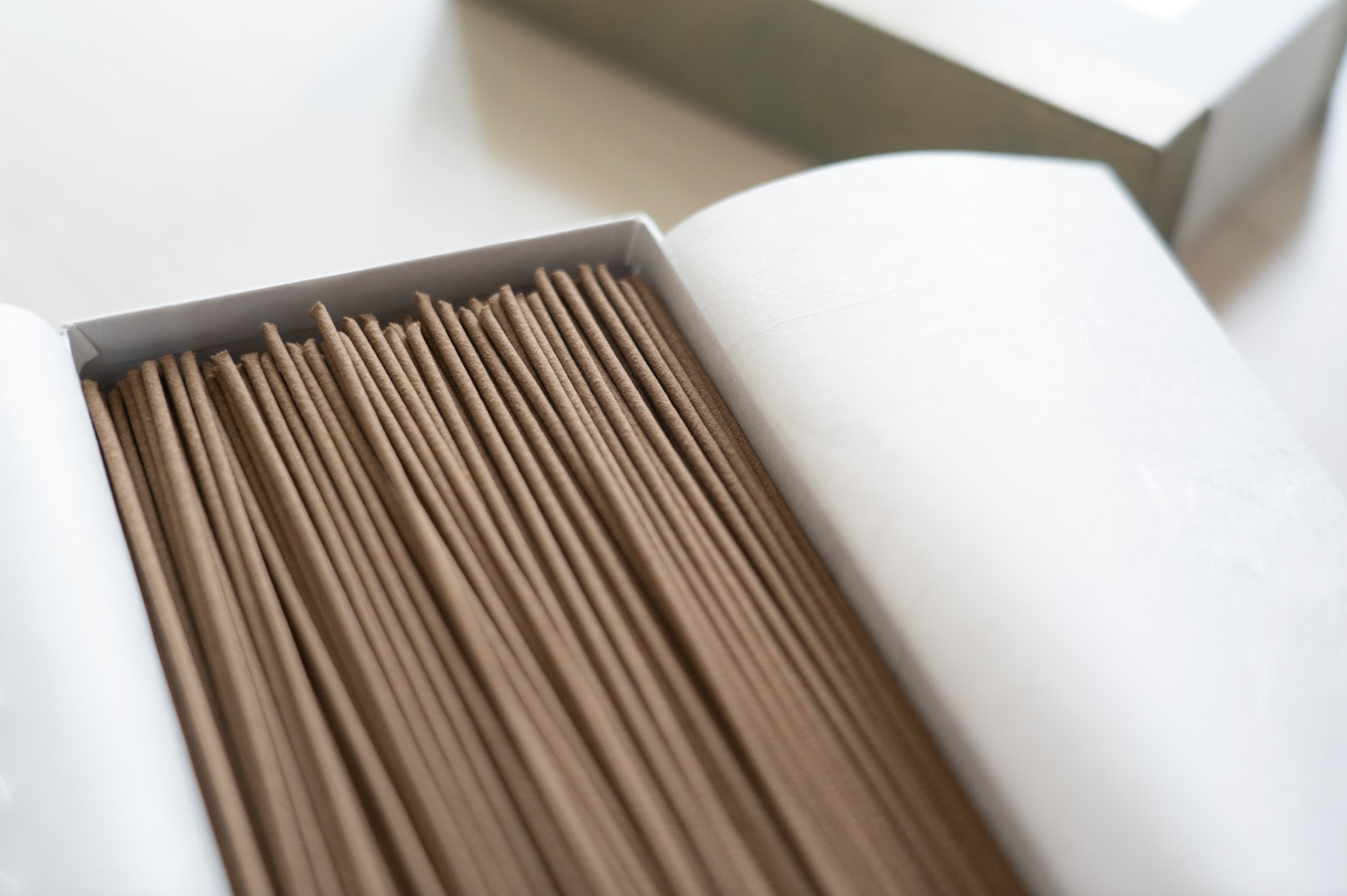 天然香料・無着色にこだわった、ゆにわと梅薫堂が共同開発したお線香です。