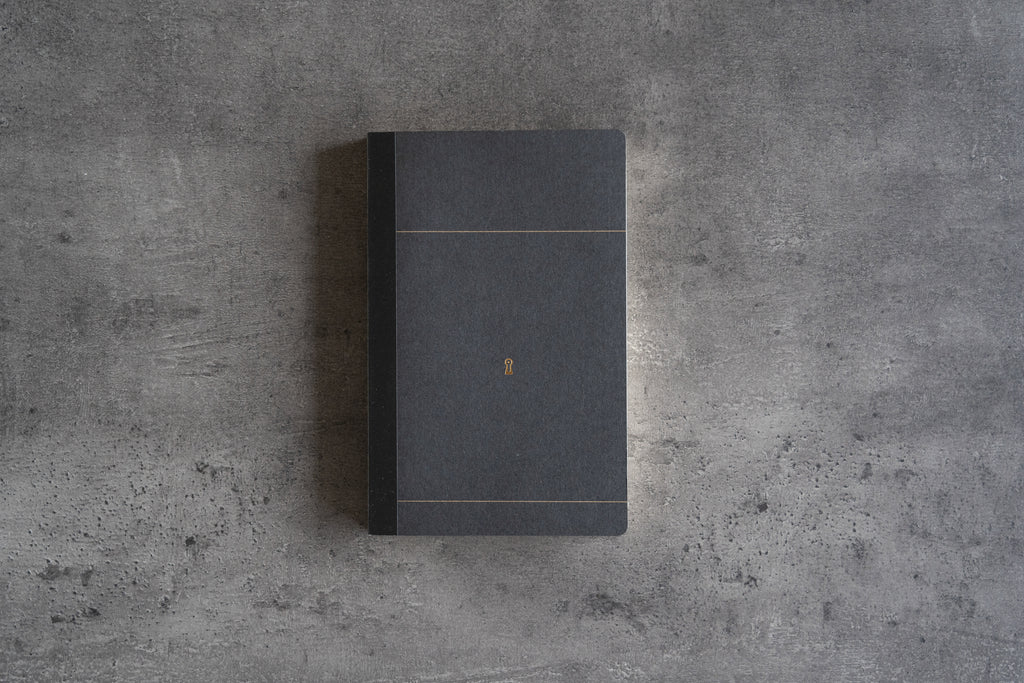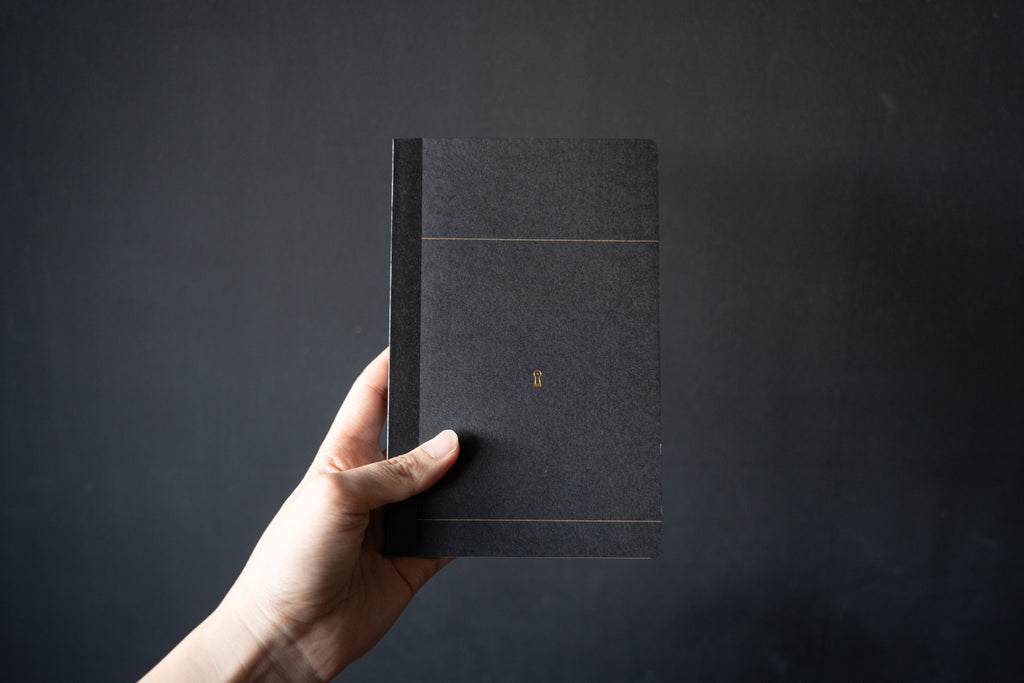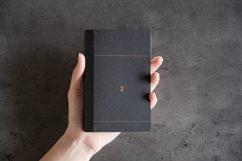 鍵穴とラインのみのスタイリッシュなデザインで、表紙や裏表紙に商品名などの文字はありません。そのまま使うこともできて、お好みで表紙にイラストや好きな文字をメタルペンで描いたり、どのスタイルでも。