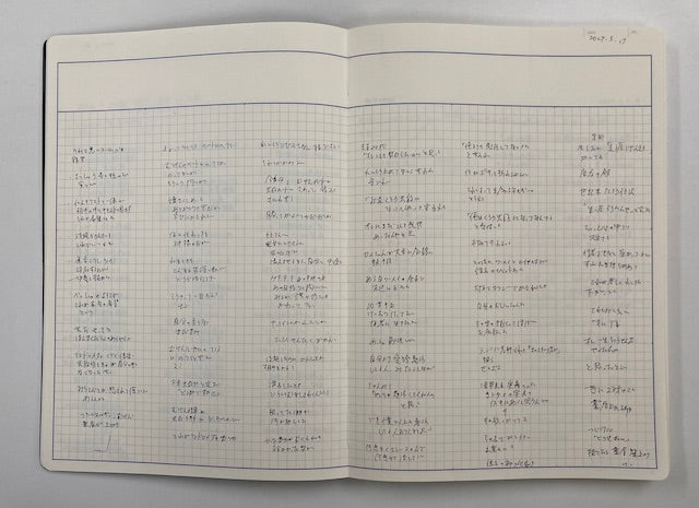 1ページを3分割(3列)にして書いていますが、シン・ノートは方眼入りなので、線を引いたりページに折り目をつけなくても、均等な幅で、スペースをきれいに使うことができます。