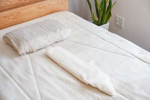 細長く折りたたみ、棒状になった部分を背骨に、三角枕を腰のアーチの部分に当ててご使用ください。日常の中で、腰と背中にかかっている重力の負担を軽くすることができます。寝ている間に身体のゆがみが整い、身体の回復力を高めてくれます。