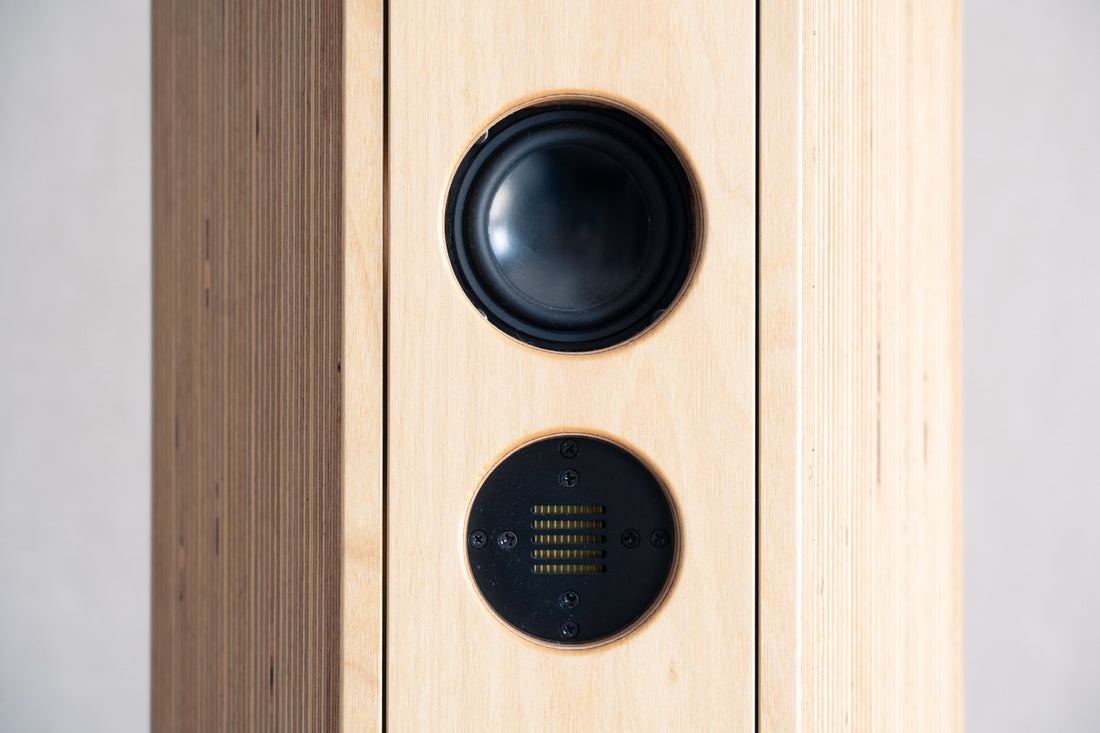 スピーカー本体の素材は、低域から高音域までバランス良く響く最高級フィンランドバーチ材を使用。形状は、生命の基本パターンである正六角形をベースにデザインしています。内部は特殊な「くり抜き構造」で、楽器のように見立てて設計しました。楽器の生音のような、繊細でありながら、立体的で伸びやかな音を広げます。