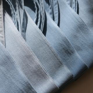 使用される単糸は糸の状態が綿(わた)に近く、着用していくうちに糊が落ちて綿(わた)に戻ろうとするので、少しずつ生地が柔らかくなっていきます。