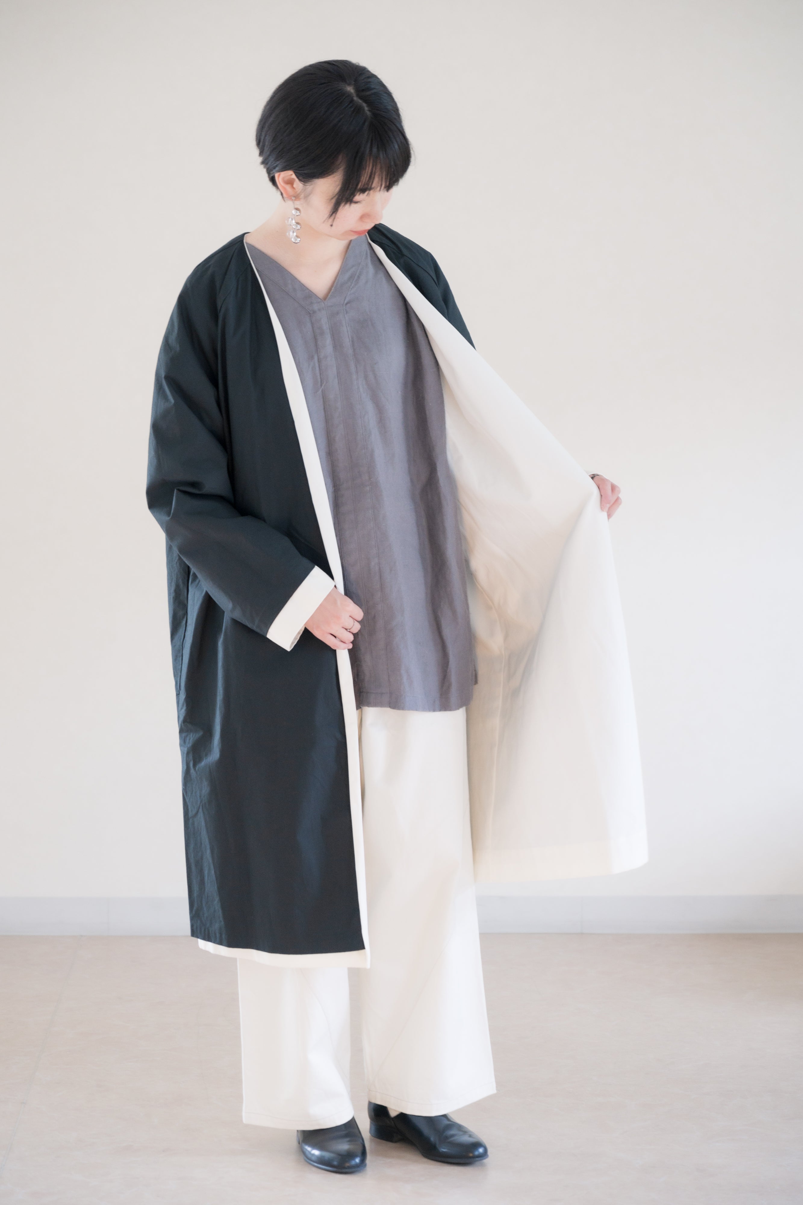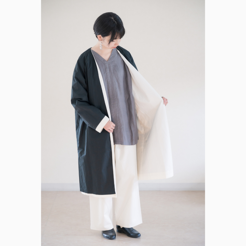 【331】リバーシブルノーカラーコート[ezu(旧:リップル洋品店)]