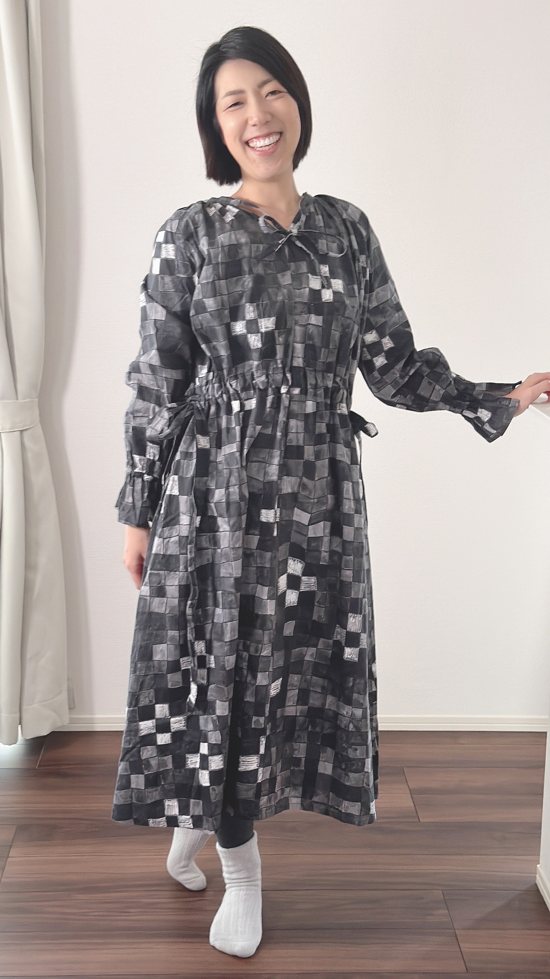 ◆寸法 全長(前身頃)112cm 着丈105cm ?身幅 55cm 裾幅50cm 袖丈57cm 袖口 11cm 襟ぐり幅 23cm 裄丈80cm
