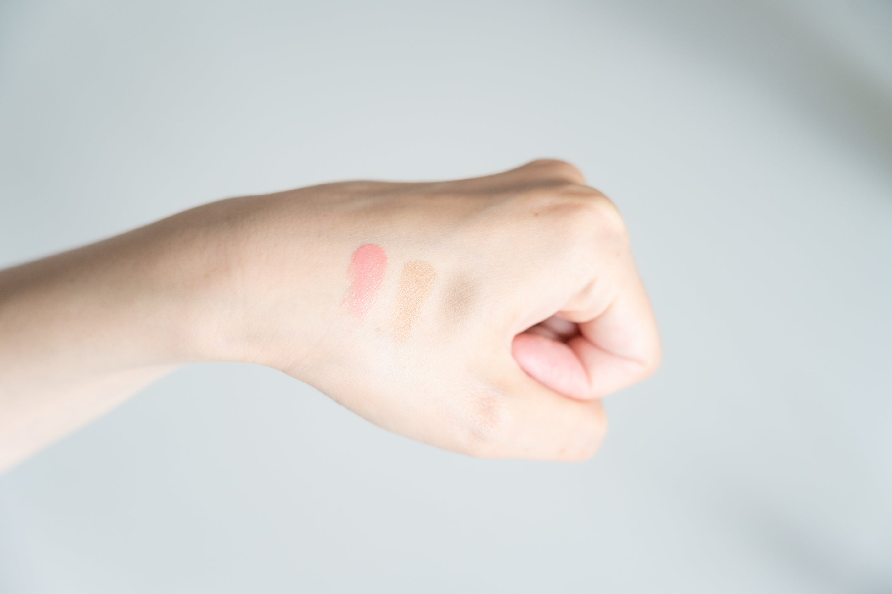 パウダータイプのアイシャドウとアイブロウに、クリームタイプのリップとチークを組み合わせています。