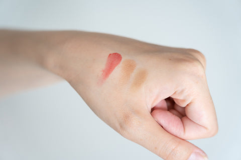 ヒマシ油、ヒマワリ種子油、メドウフォーム油、シリカ、キャンデリラロウ、ミツロウ、キャンデリラロウエキス、ホホバ種子油、ヤシ油、アルガニアスピノサ核油、クズデンプン、オプンチアフィクスインジカ果実エキス、シャクヤク根エキス、チャ葉エキス、トコフェロール、水、BG※1、エタノール、(+/?)酸化鉄、酸化チタン、マイカ、カルミン※2水酸化AI