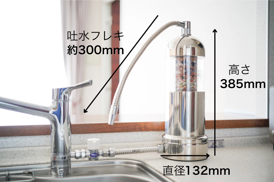 ・浄水器の大きさは「直径132mmx高さ385mm」です。
