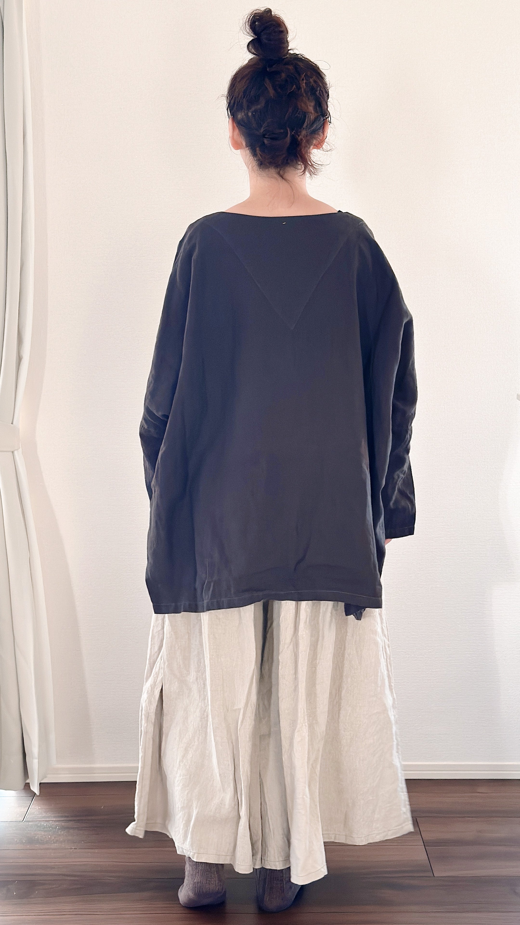 サイズ FREE 素材 リネン100% ウエスト29cm(ゴムで伸縮あり) ヒップ68cm 総丈85cm (全て平置きで採寸)