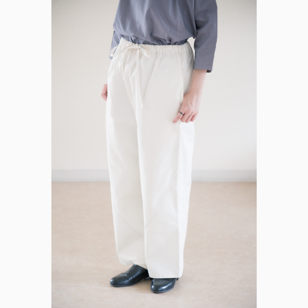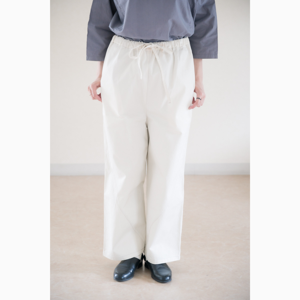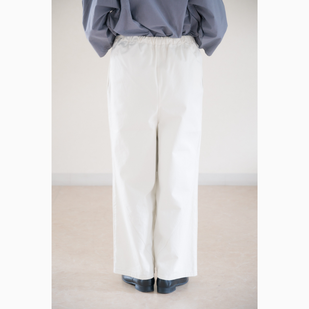 【425】切り替えワイドパンツ 白[ezu(旧:リップル洋品店)]