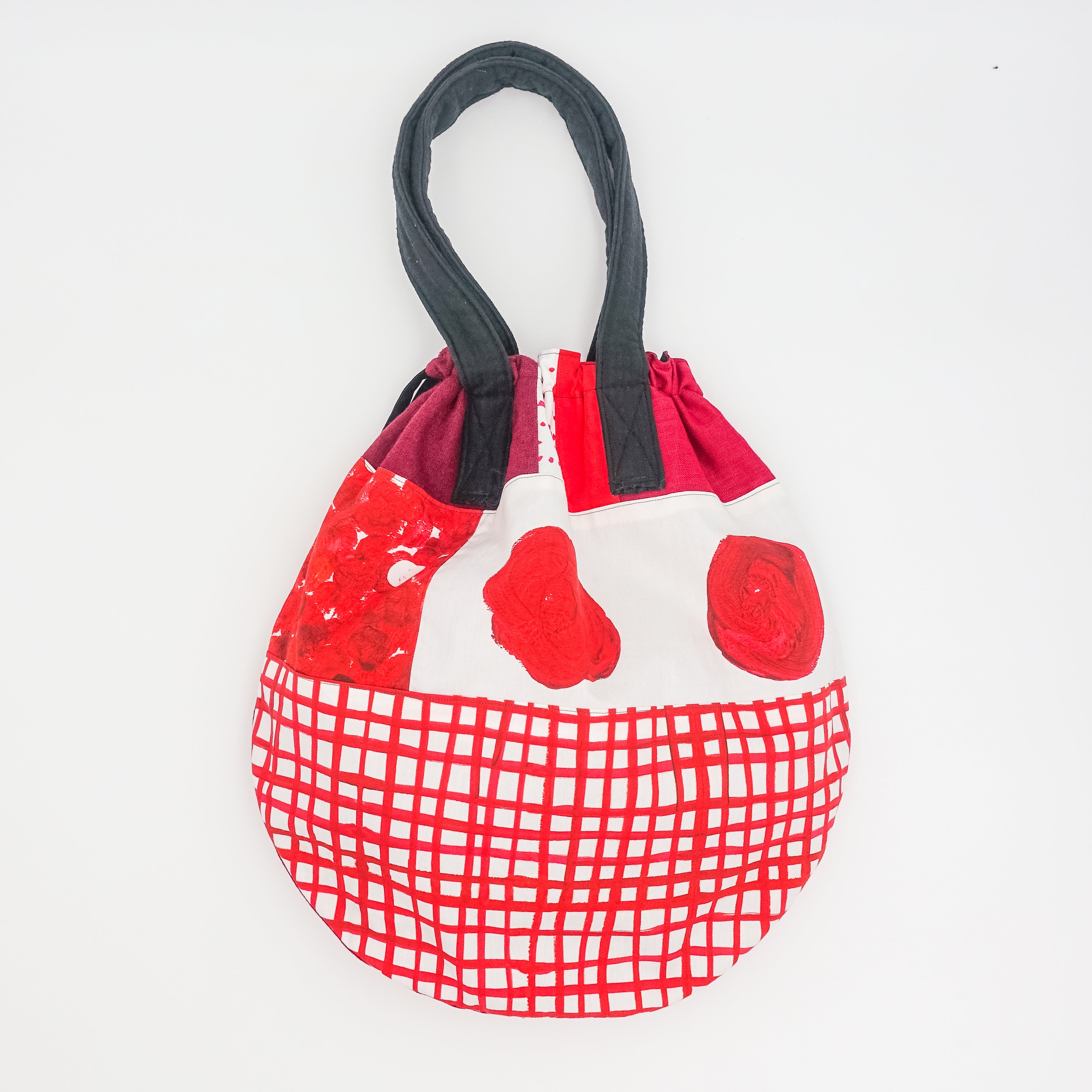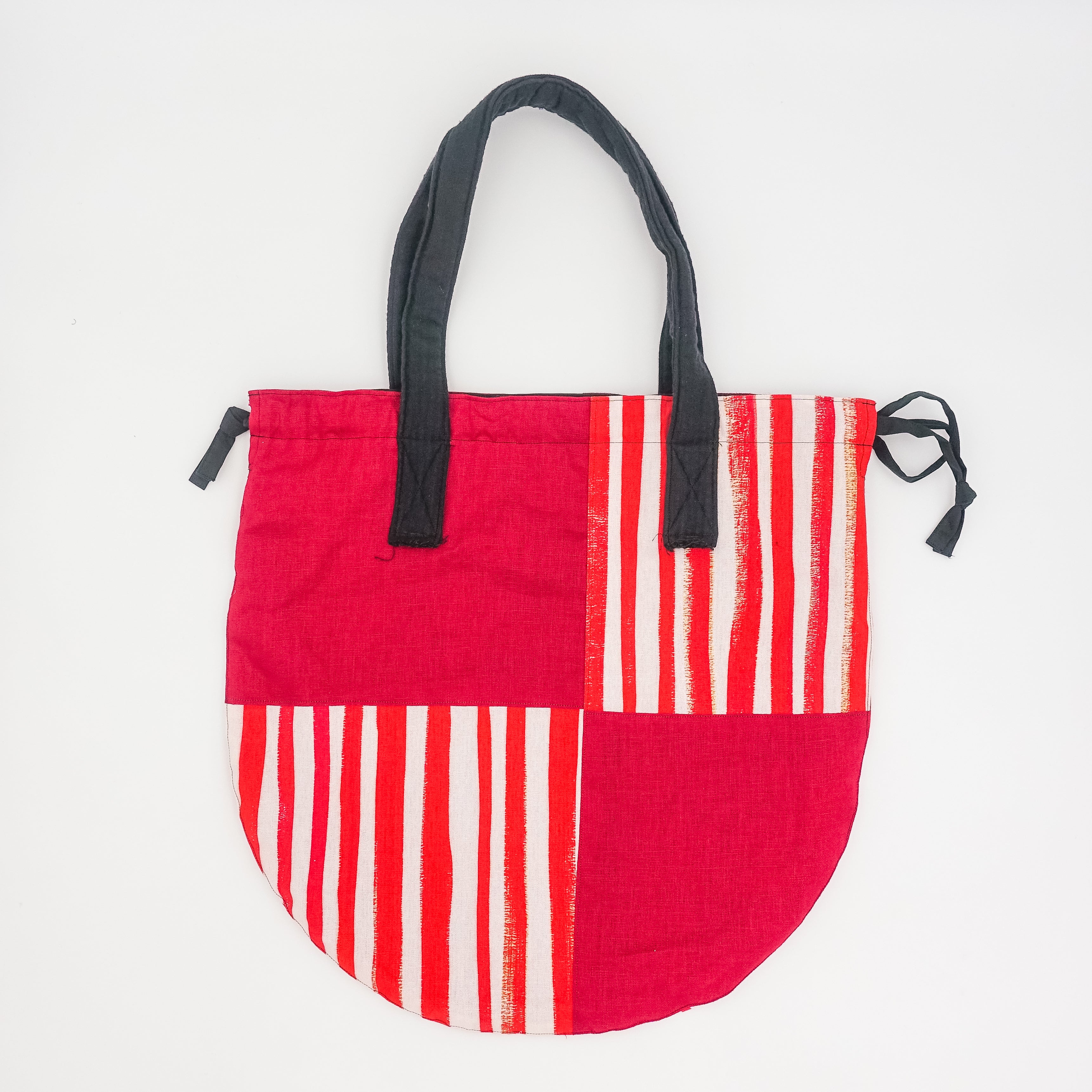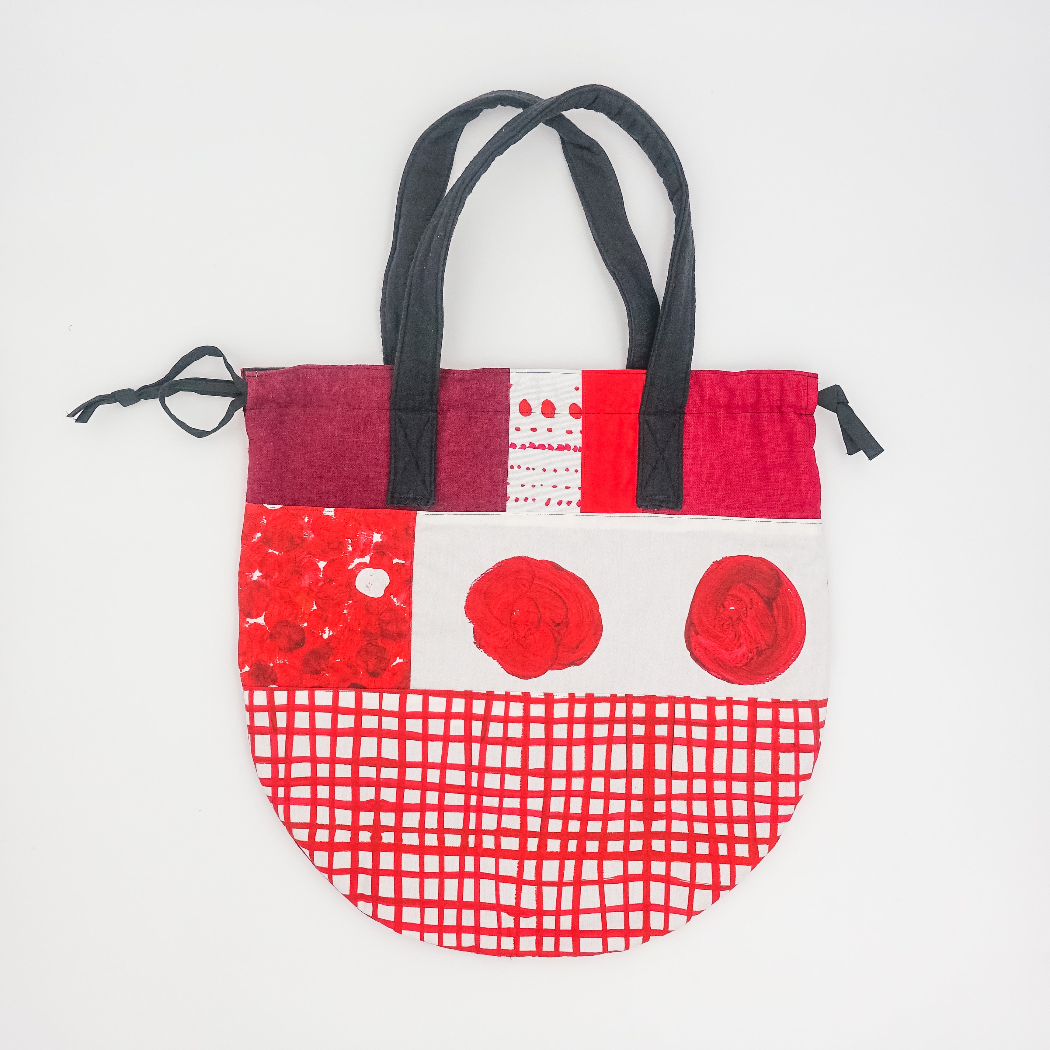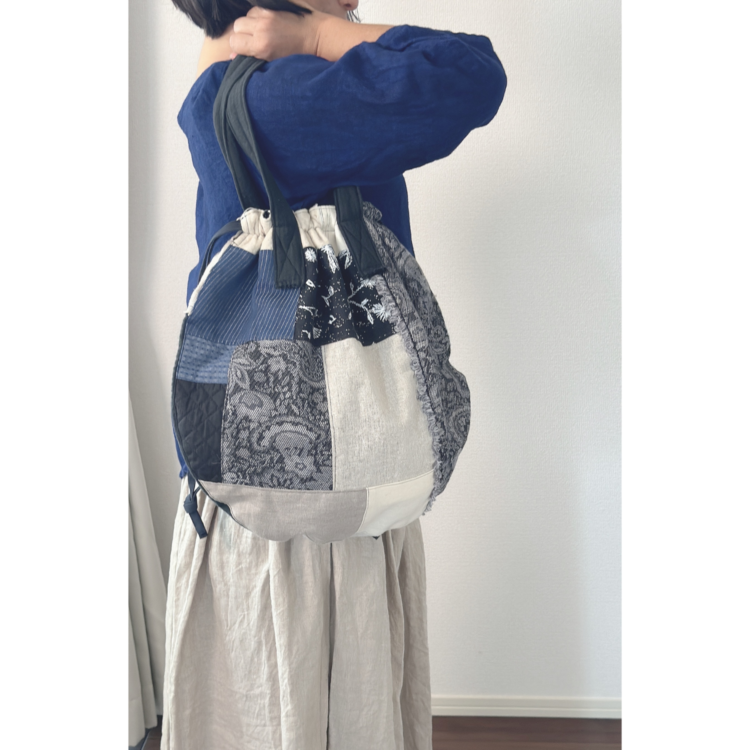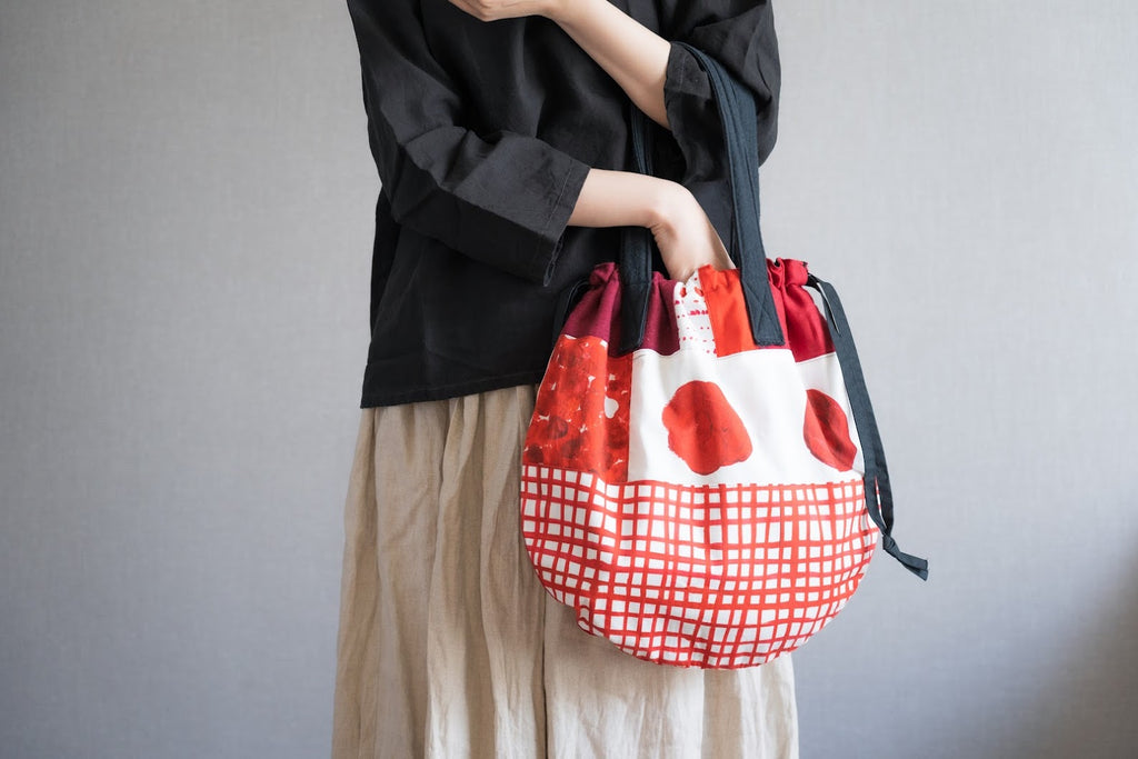 開口部分のひもを締めると、巾着にもなるトートバッグです。