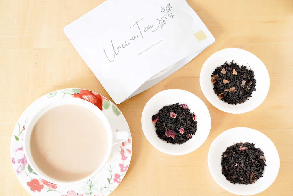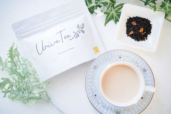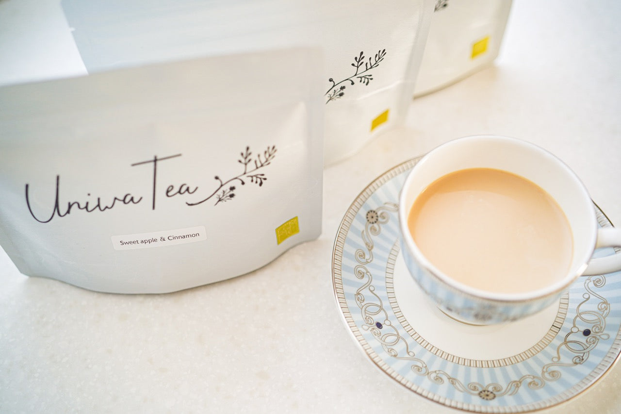Uniwa Tea「スイートアップル&シナモン」は、甘酸っぱい林檎にスパイシーなシナモンを加えた、まるでアップルパイのようなフレーバーティー。