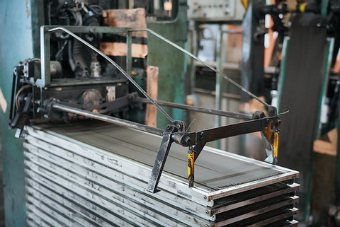 そこで、工程が機械化された工場もあります。こちらの工場では、先ほどの手作業の工程がそのまま機械化されていました。