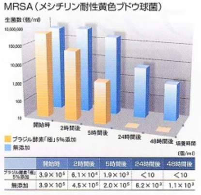 ブラジル酵素「極」は、制菌力試験においても私たちの身体に非常に有用と考えられる結果を出しています。