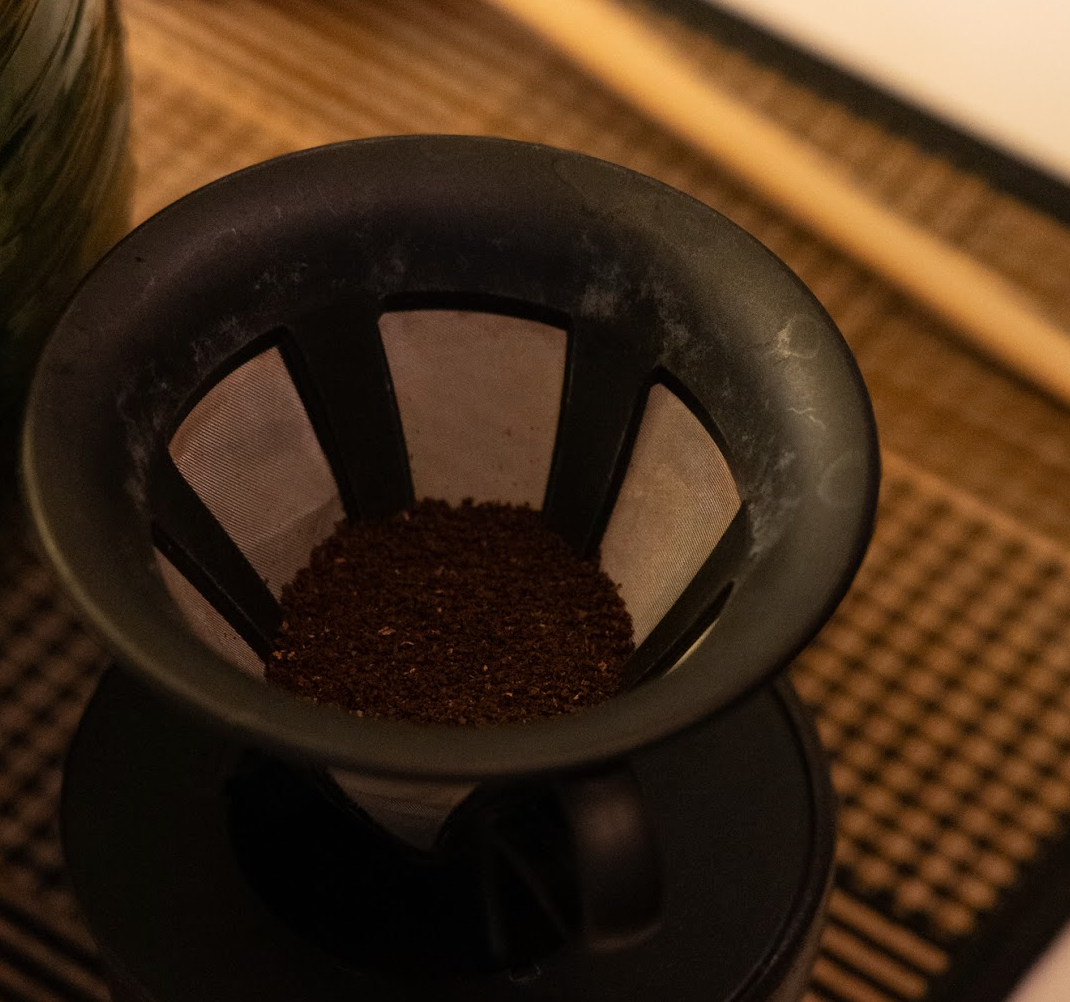 2、ドリッパーをセットして、挽いたコーヒー豆を入れる。