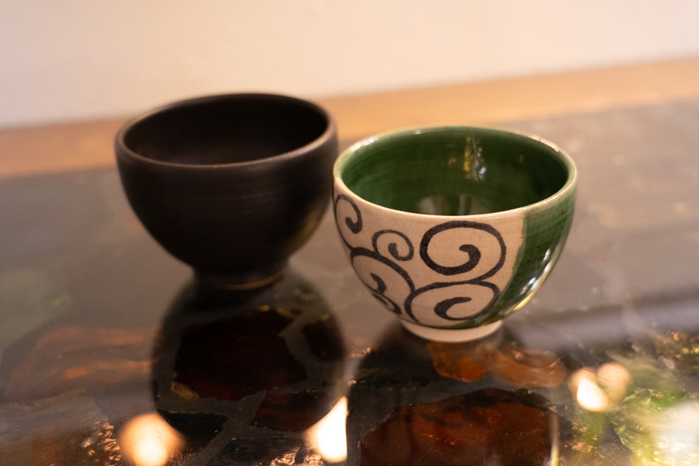 緑の茶碗は自分の肉体、黒の茶碗は自分の精神を表すと言われていますので、感じながら、飲んでみてください。