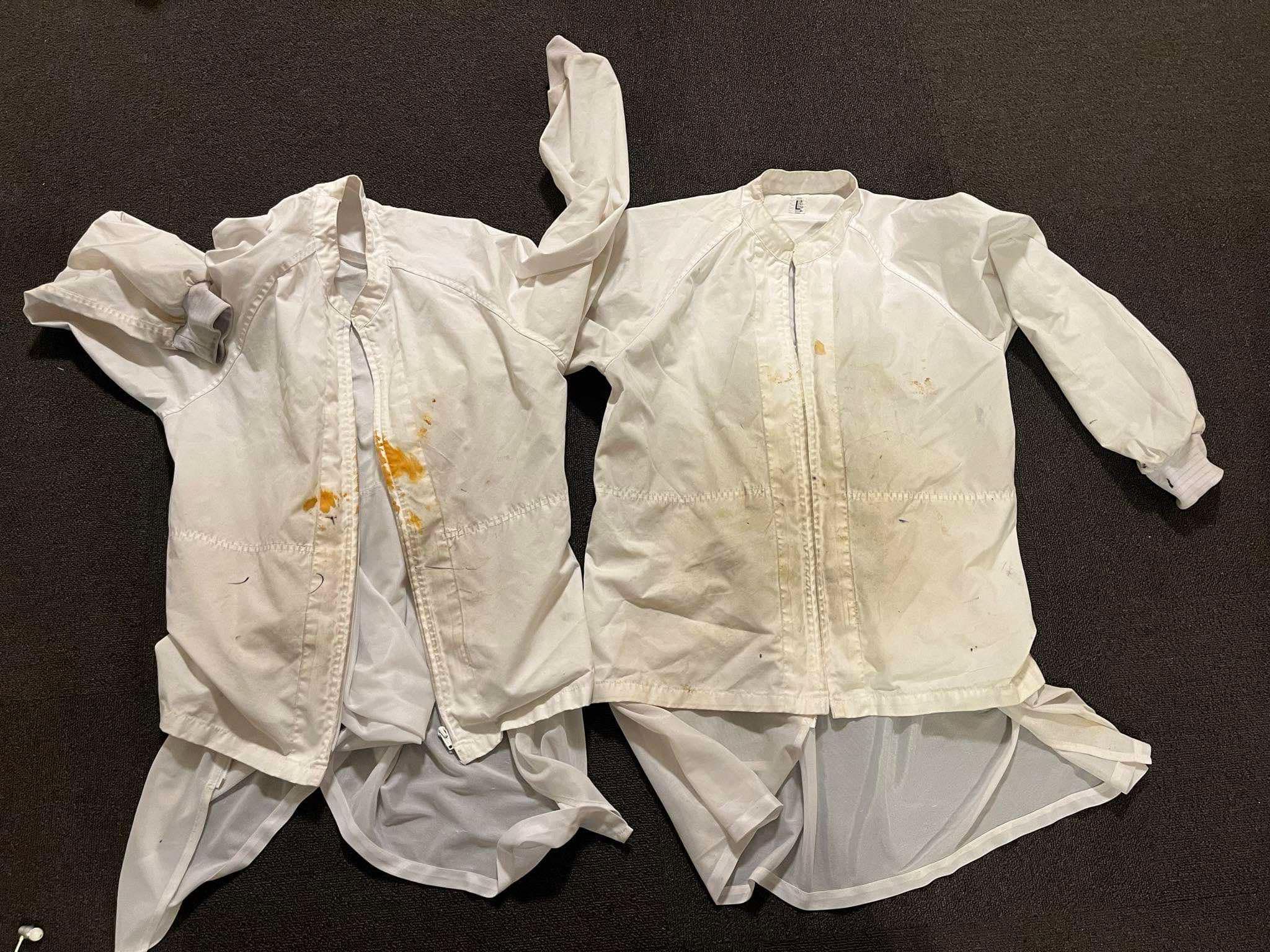 ゼットブルーと酸素系漂白剤、この二つは衣類の汚れ落としに欠かせません。衣類の汚れが目立つ部分に、2倍に希釈したゼットブルーで揉みこんだ後、酸素系漂白剤でお湯につけ込むと、、この通り!!大概のものはこちらで綺麗になります!!酷い汚れの時は、熱めのお湯をバケツに張り、酸素系漂白剤を入れて、一晩置いて漂白してます!!(30分程でも白くなりますが、汚れがひどいときは、一晩置いておきます)この組み合わせで、1日置くと驚くほど真っ白に!