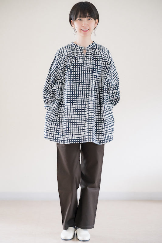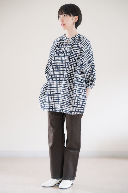 腰まわりはゆったり、ウエストはひもで絞る仕様なので、体型を問わず着こなしていただけます。