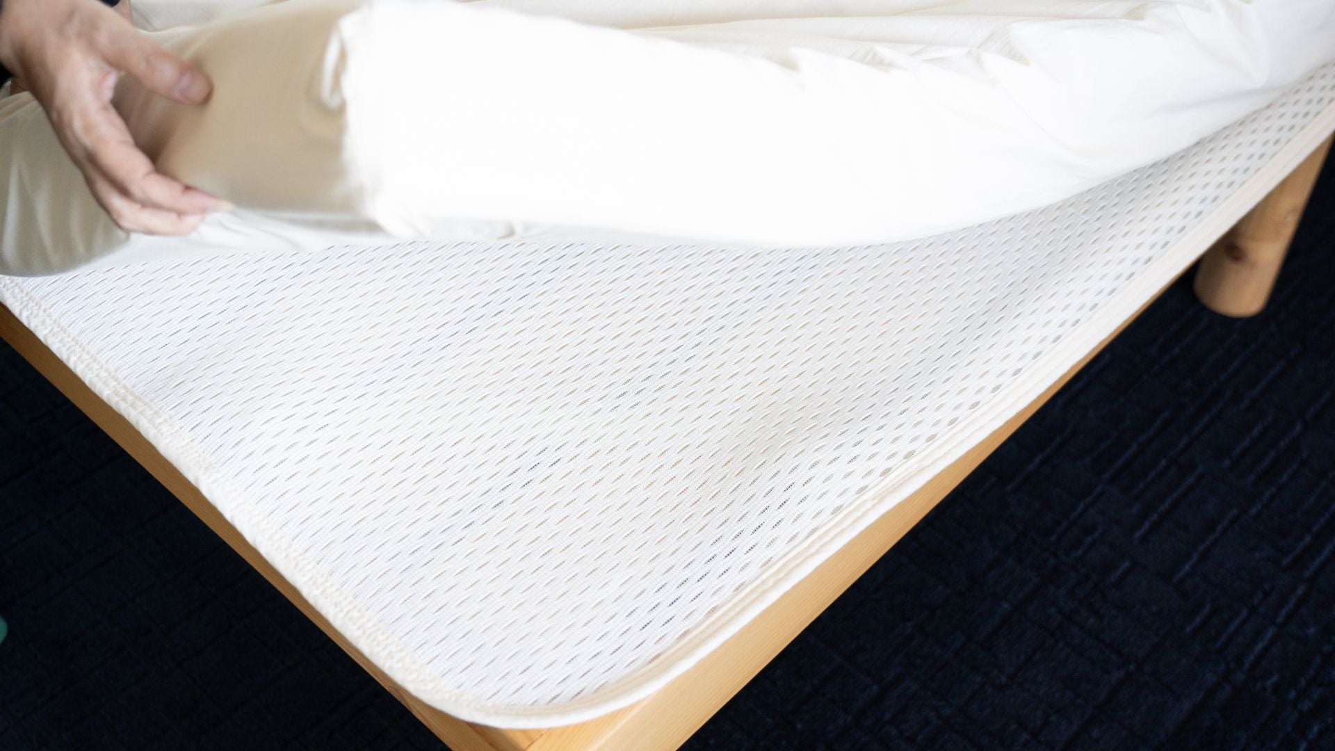 『万能敷きパッド』は、布団の中の湿気を逃し、さらっと快適に保ってくれます。