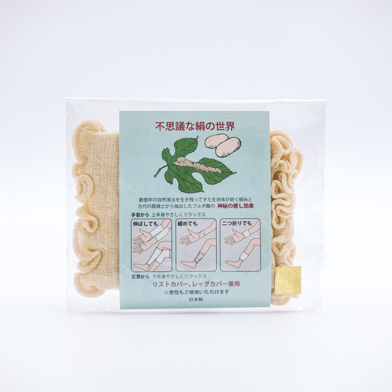 天然シルクリストウォーマーは、野性のカイコのシルクに特殊酵素フルボ酸をバイオ結合させて作られた多機能リストウォーマーです。