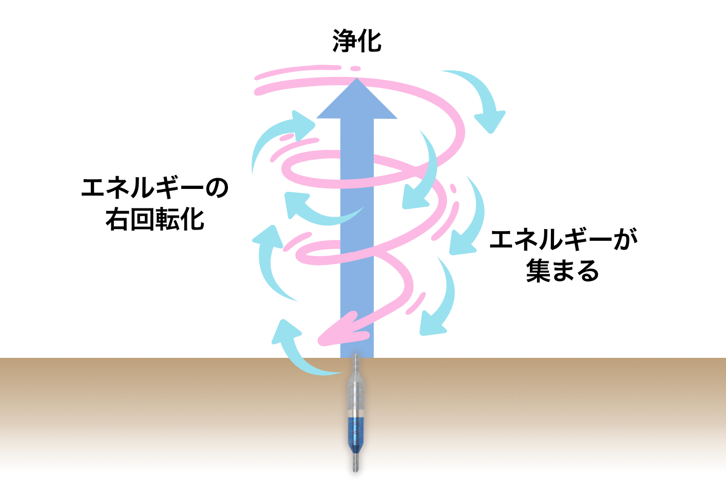これによって、エネルギー状態がわるい場合、まずはブルーを使ってエネルギーを右螺旋状にして、そのごZEROを使ってエネルギーを集約し、浄化するエネルギーに変えてくれます。