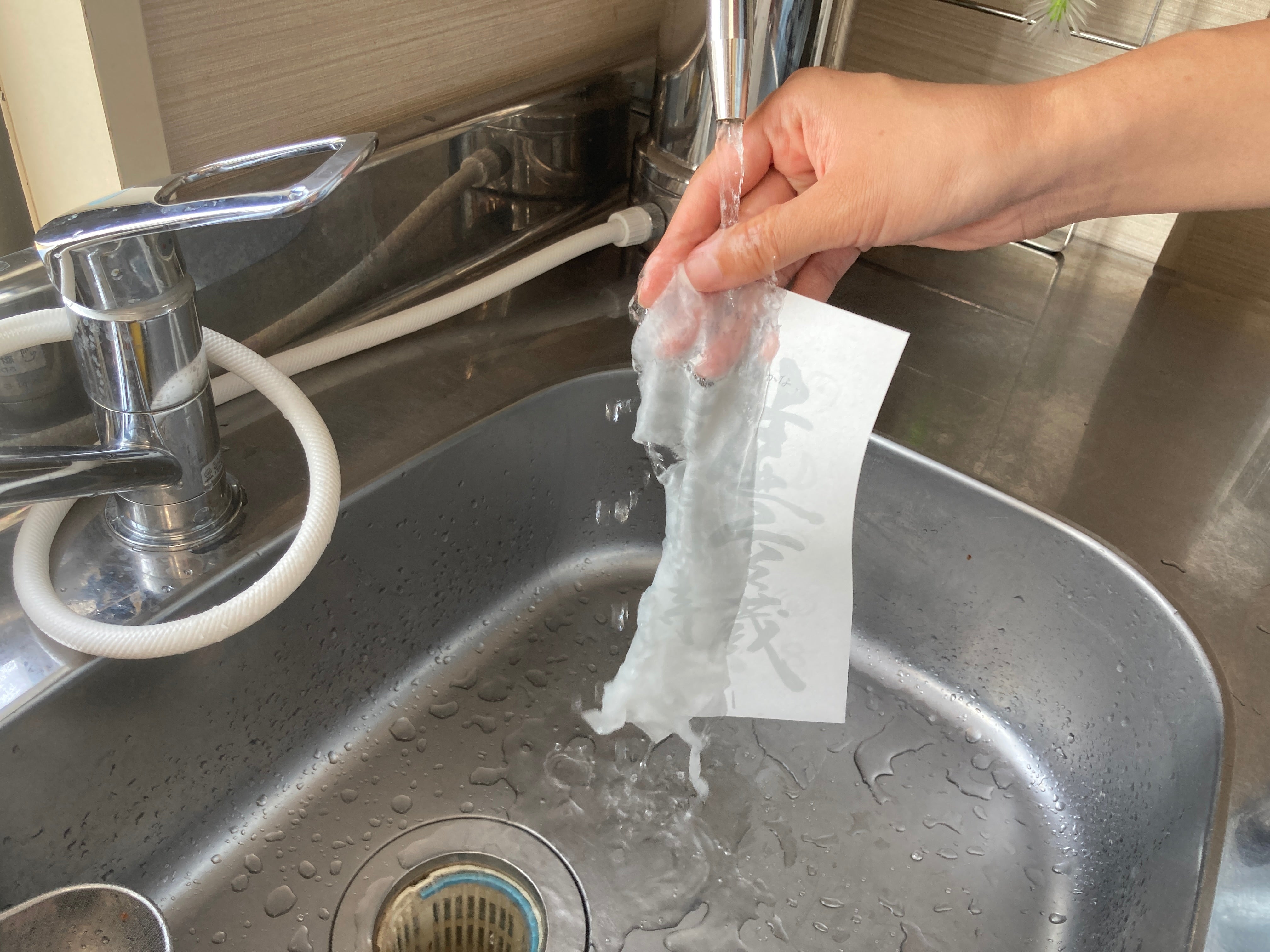 このシートは、水につけるとすぐ溶けるので、