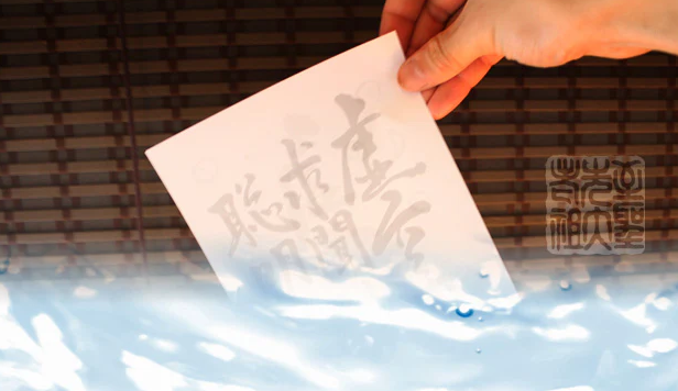 悩み事を書き出した後は、紙を水に流して使います。