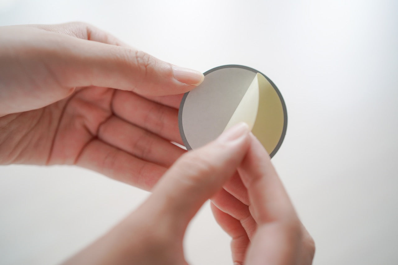 - このシールは特殊な金属でできていて、金属の効力で電磁波を有効なエネルギーに変えることを可能にしています。