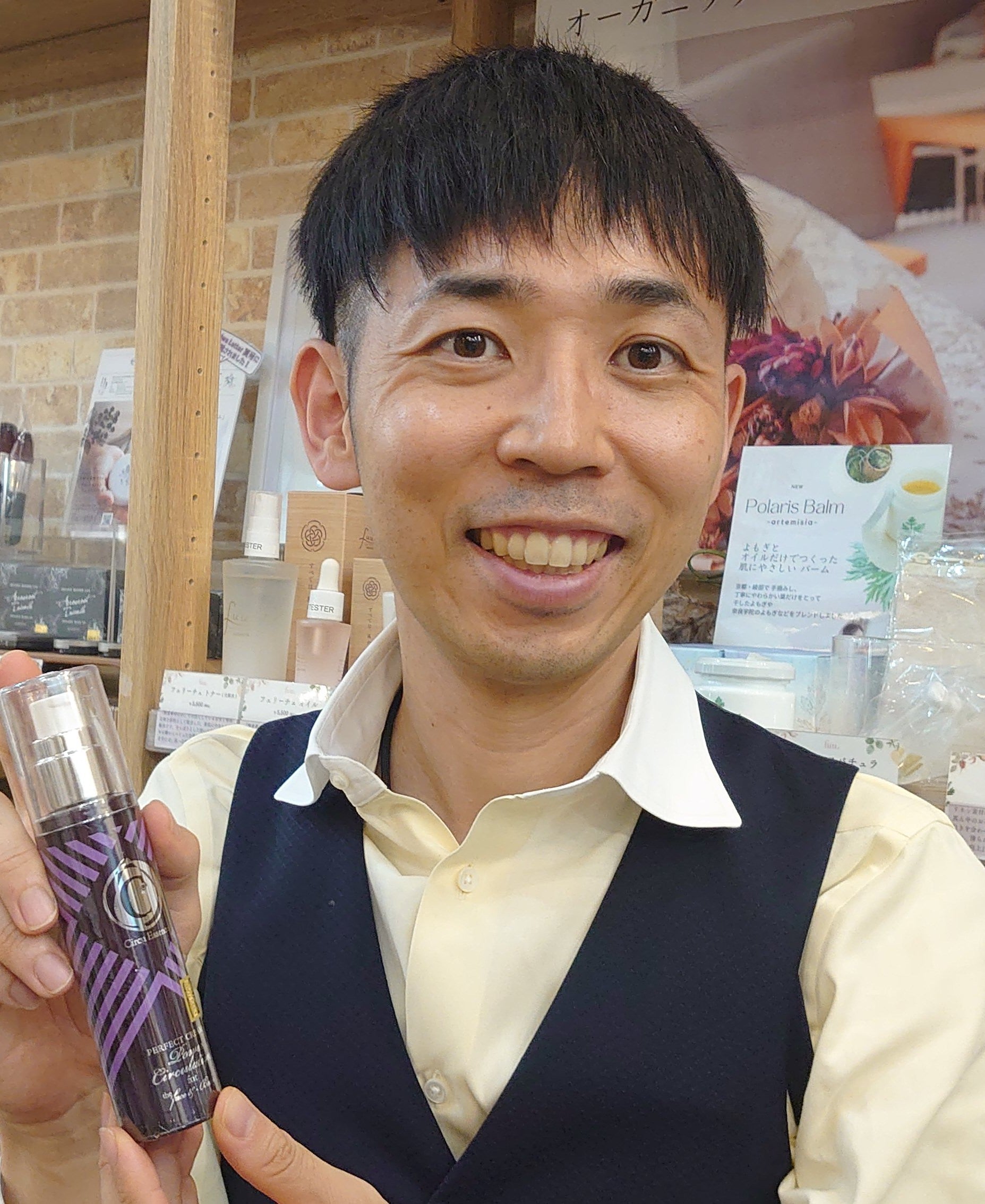 あるとき、そのアスリートの一人から、「この香りが入ったケアクリームを作ってほしい」とオーダーがあり、パワーサーキュレーションの開発が始まります。
