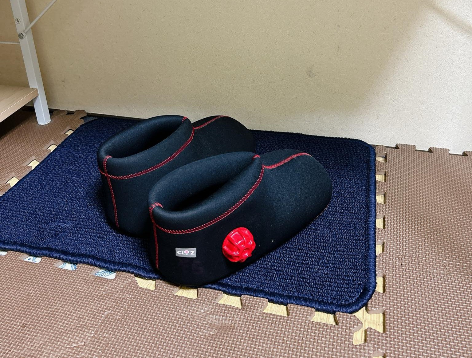 湯たんぽだからお湯を入れるだけ。履いた瞬間足が温まります。