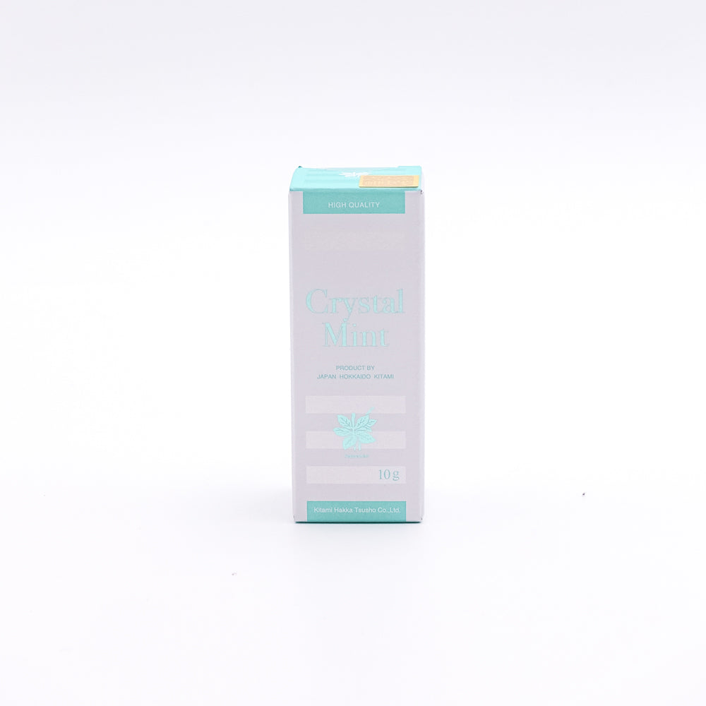 「北見 クリスタルペパーミント 10g」は、ハッカ油の主成分、ハッカ脳を瓶詰めしたものです。スーッとする刺激でお口スッキリ。エチケットにも最適です。