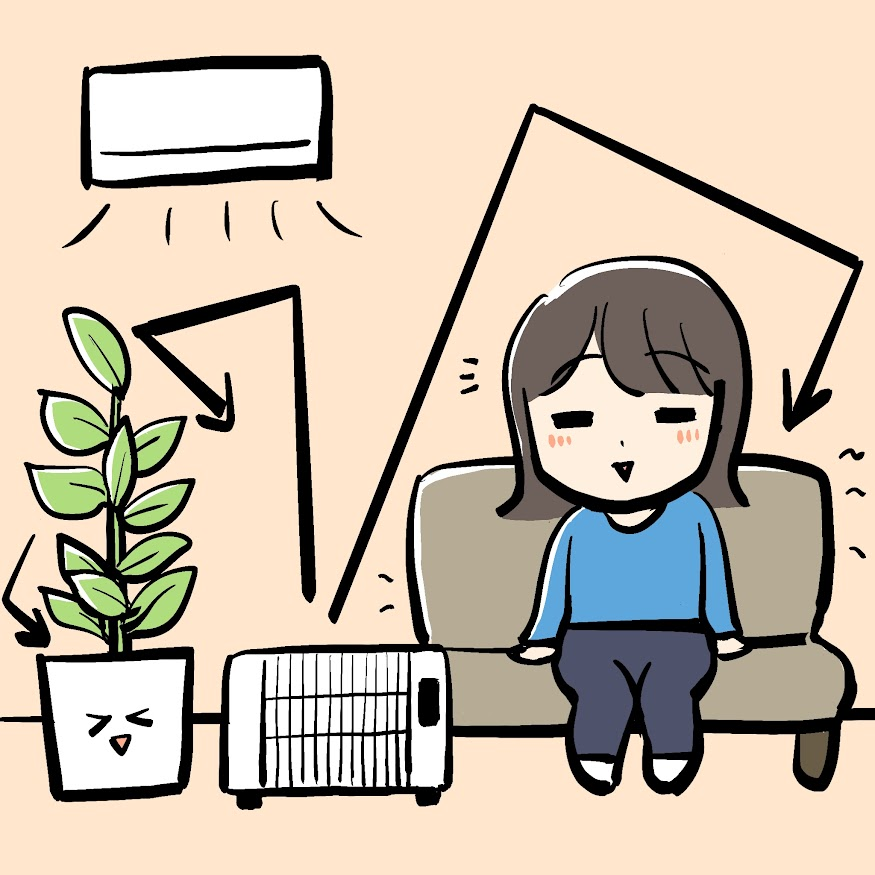 また、エアコンやファンヒーターの温風は、空間の上方に流れていくため、足元は冷えやすかったりします。