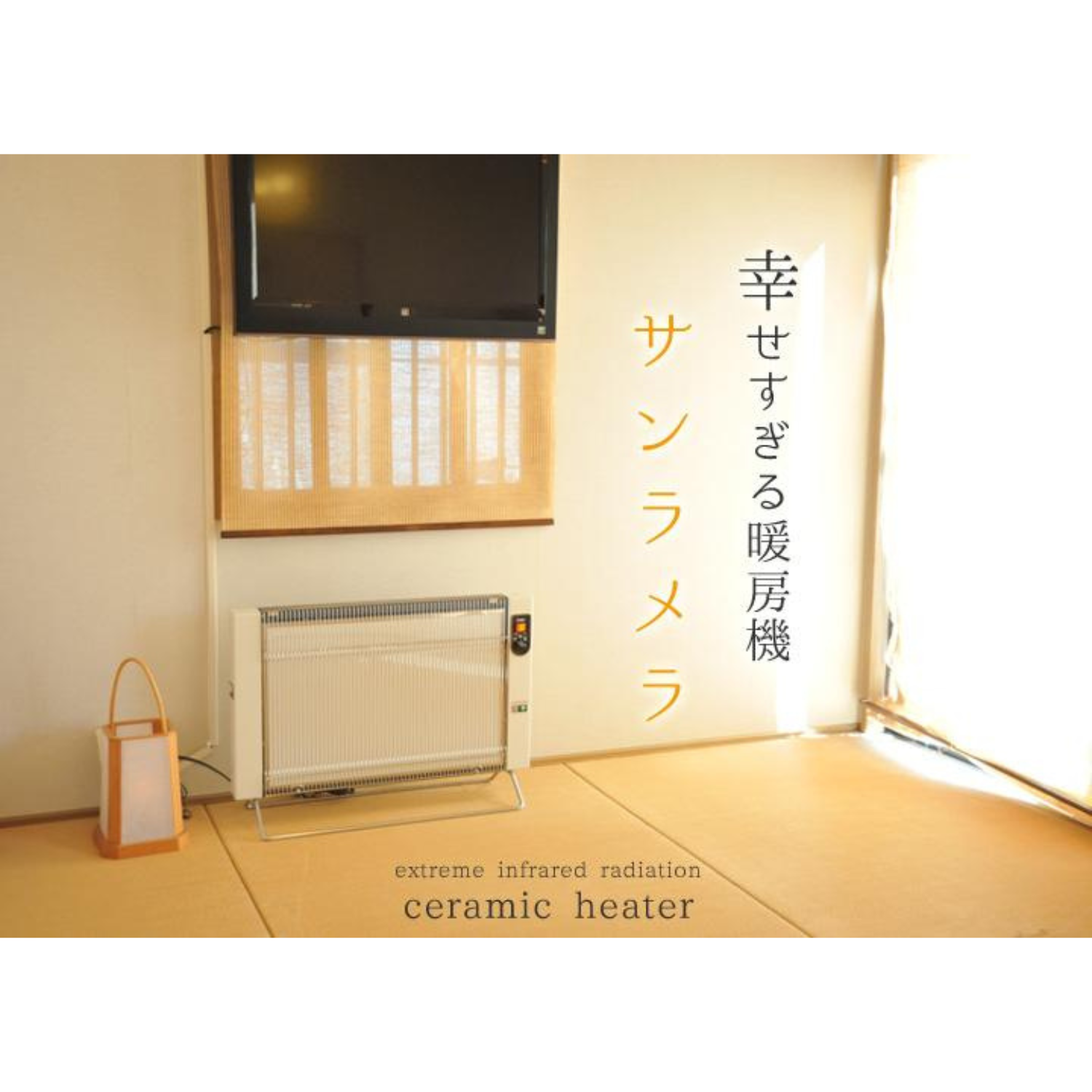 - 遠赤外線は空気を暖めず、直接人体に作用しますので、サンラメラの前でじっと遠赤外線を浴びていれば、部屋の広さにかかわらず体の芯からポカポカする感覚がありますが、寒冷地や極寒の時期のご使用では補助暖房としてお考えください。