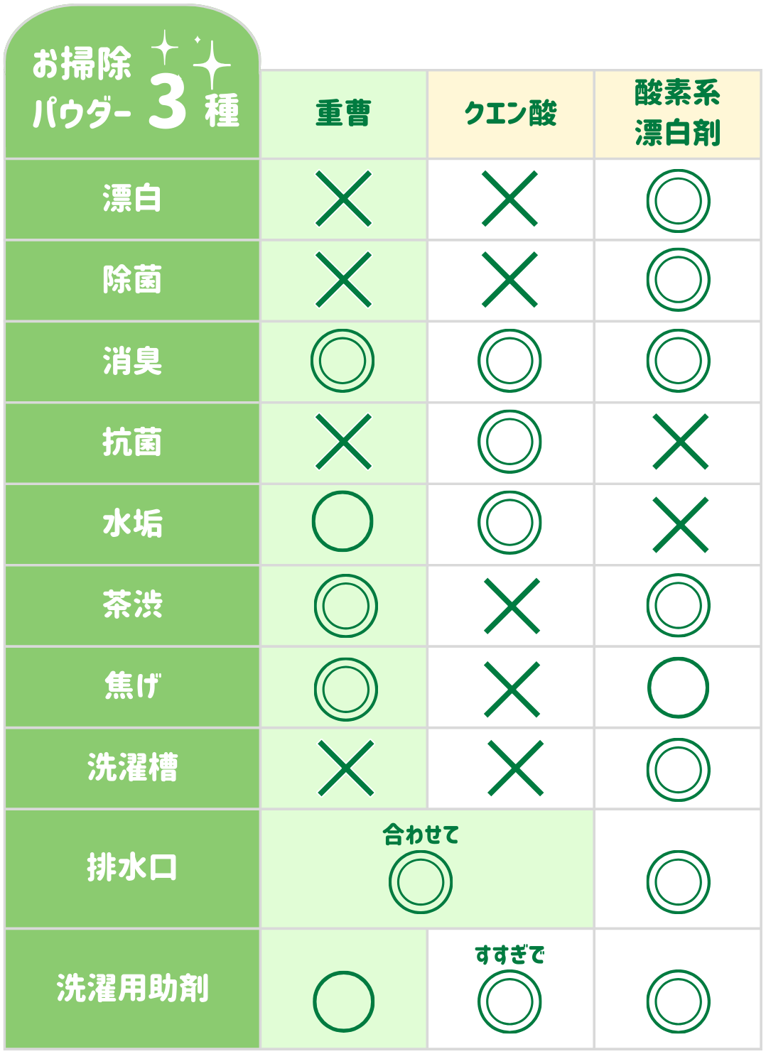クレンザーのように茶渋やフライパンの焦げ、