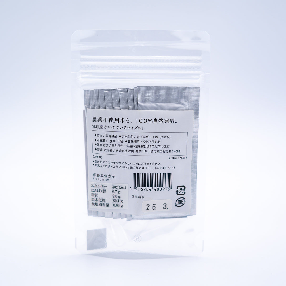 mygurtはお米(農薬不使用米)、米麹、水を原料に発酵させたものをフリーズドライにしたものです 。